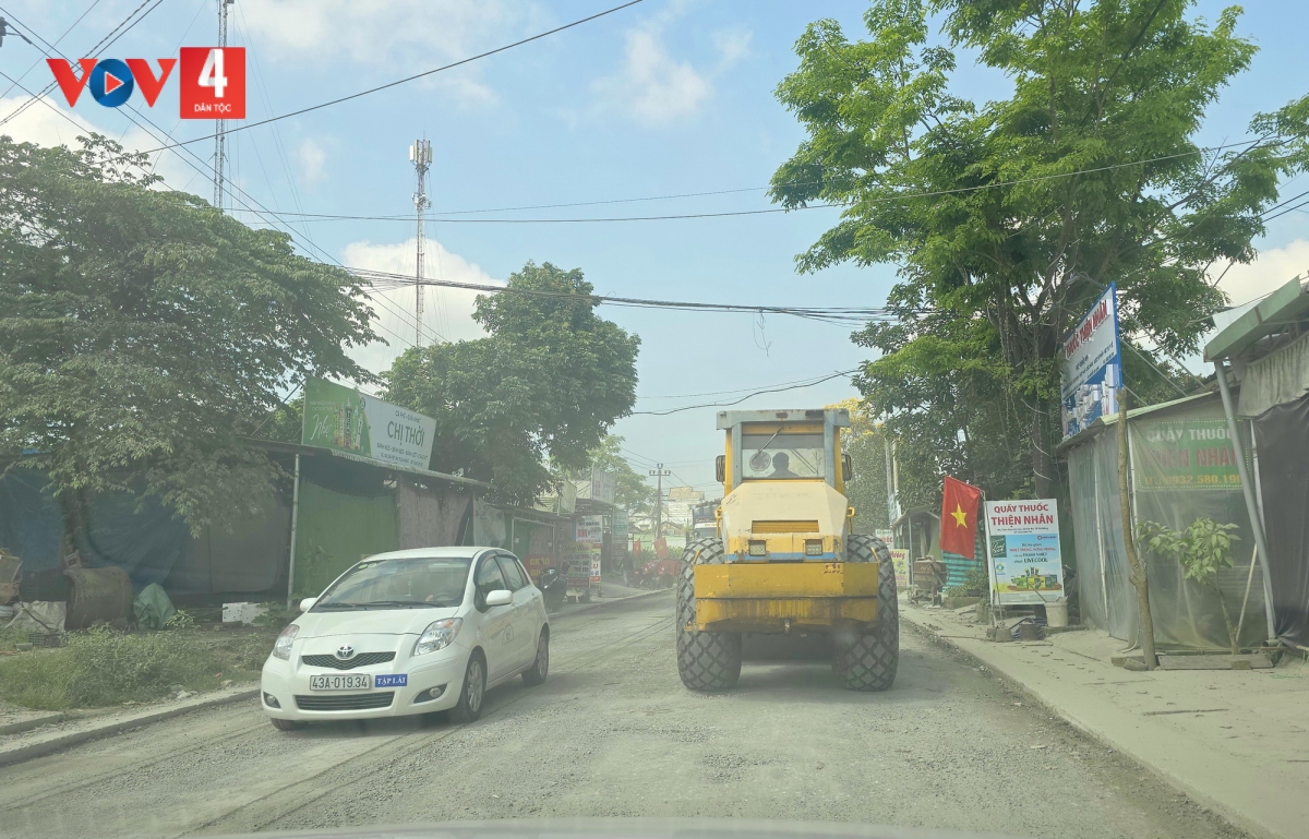 Ghi nhận thực tế cho thấy, tuyến đường xuất hiện tình trạng thi công chắp vá, đứt quãng. Có đoạn vừa thảm nhựa đã bong tróc, có đoạn còn rải đá dăm gồ ghề, bụi mù. Những ngày mưa, mặt đường trơn trượt, tiềm ẩn nguy cơ tai nạn. Dù thời tiết thuận lợi, nhiều khu vực đã bàn giao mặt bằng nhưng vẫn thiếu máy móc, nhân công.