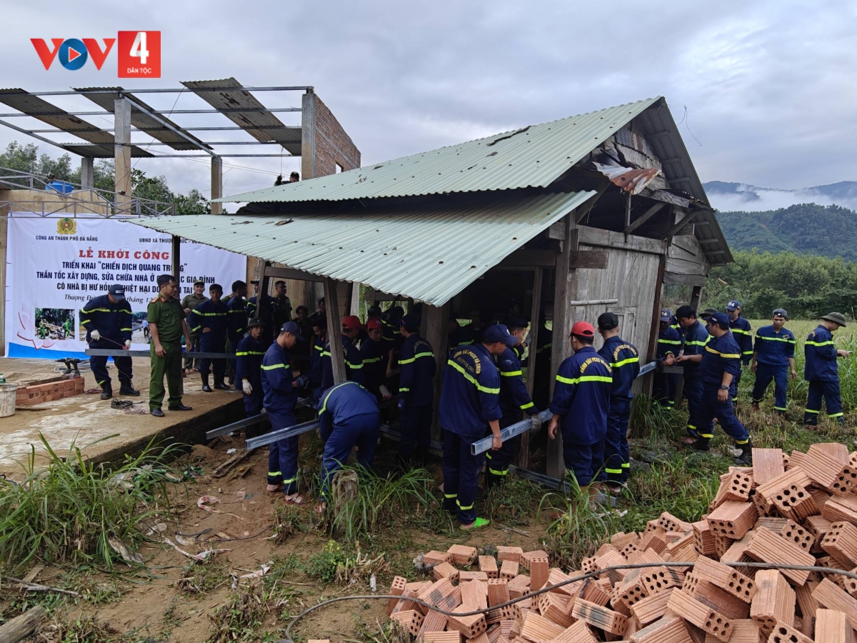 Những đợt bão lũ vừa qua đã gây thiệt hại nặng nề cho nhiều địa phương ở thành phố Đà Nẵng. Nhiều căn nhà của bà con bị sập, tốc mái, hư hỏng nghiêm trọng. Hưởng ứng Chiến dịch Quang Trung do Thủ tướng Chính phủ phát động, Công an thành phố Đà Nẵng đã huy động lực lượng khẩn trương ra quân, trực tiếp giúp dân dựng lại nhà cửa