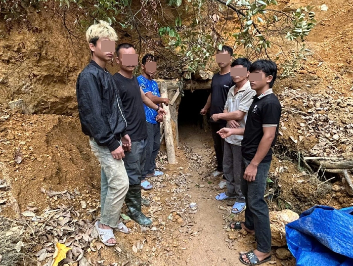 Qua kiểm tra, lực lượng công an phát hiện, bắt quả tang 7 đối tượng hoạt động khai thác vàng trái phép, gồm: Nguyễn Thành T. (SN 1993), Nguyễn Minh T. (SN 1982), Lê Văn C. (SN 1984, cùng trú xã Phú Ninh); Trần Quốc C. (SN 2002, trú xã Trà Giác); Nguyễn Quốc Tr. (SN 1983, trú xã Đức Phú); Lê Văn D. (SN 2008) và Đinh Kỹ L. (SN 2010, cùng trú xã Trà Giáp, TP Đà Nẵng).