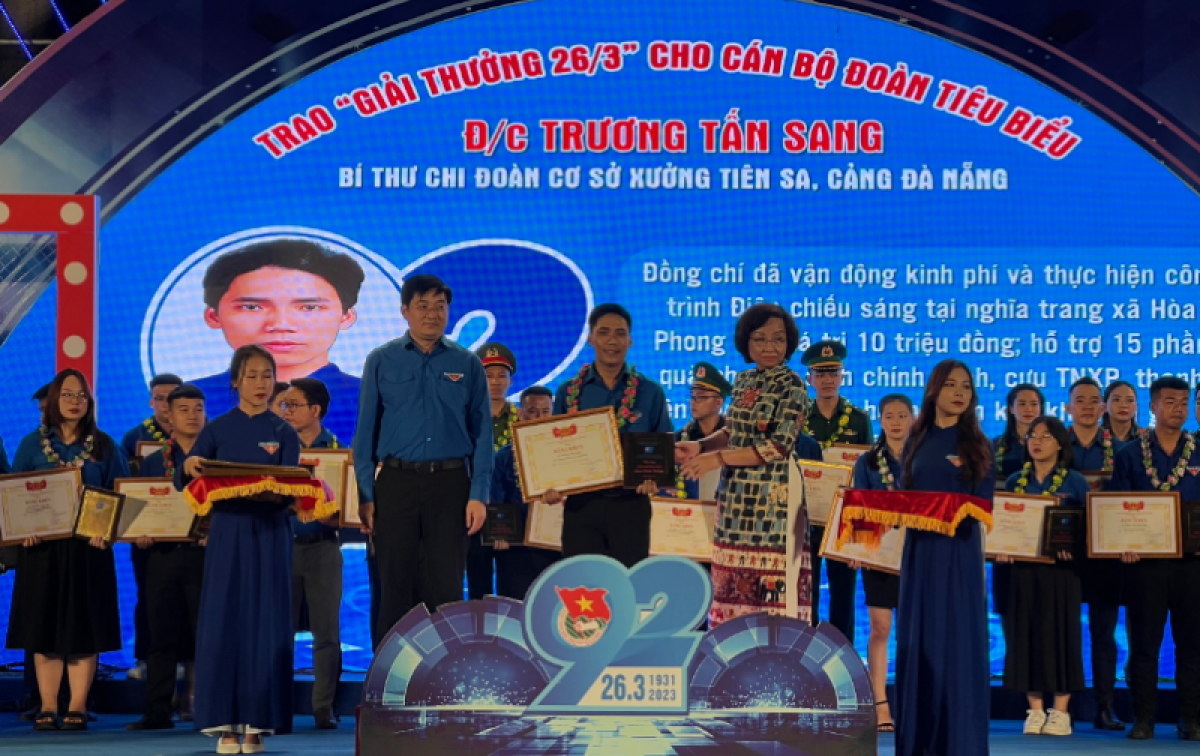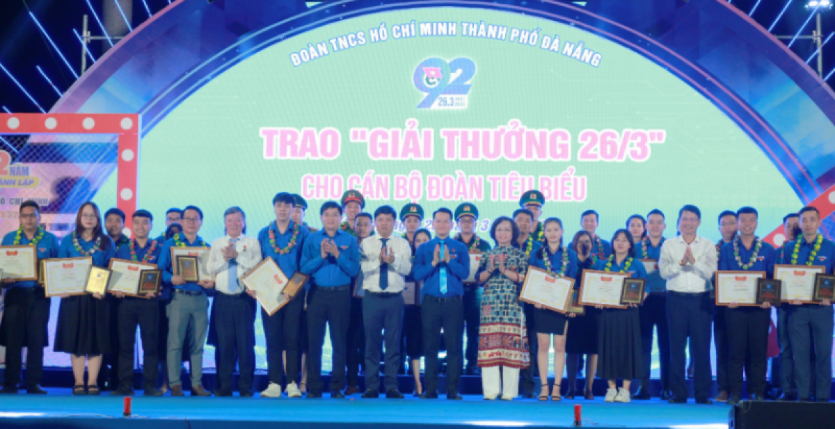 Tối 23/3, tại Trung tâm Hội Chợ triển lãm thành phố, Thành Đoàn Đà Nẵng tổ chức trao “Giải thưởng 26/3" tặng 52 cán bộ Đoàn tiêu biểu và khai mạc Hội trại “Vững bước tiên phong” nhân kỷ niệm 92 năm Ngày thành lập Đoàn TNCS Hồ Chí Minh (26/3/1931 - 26/3/2023).