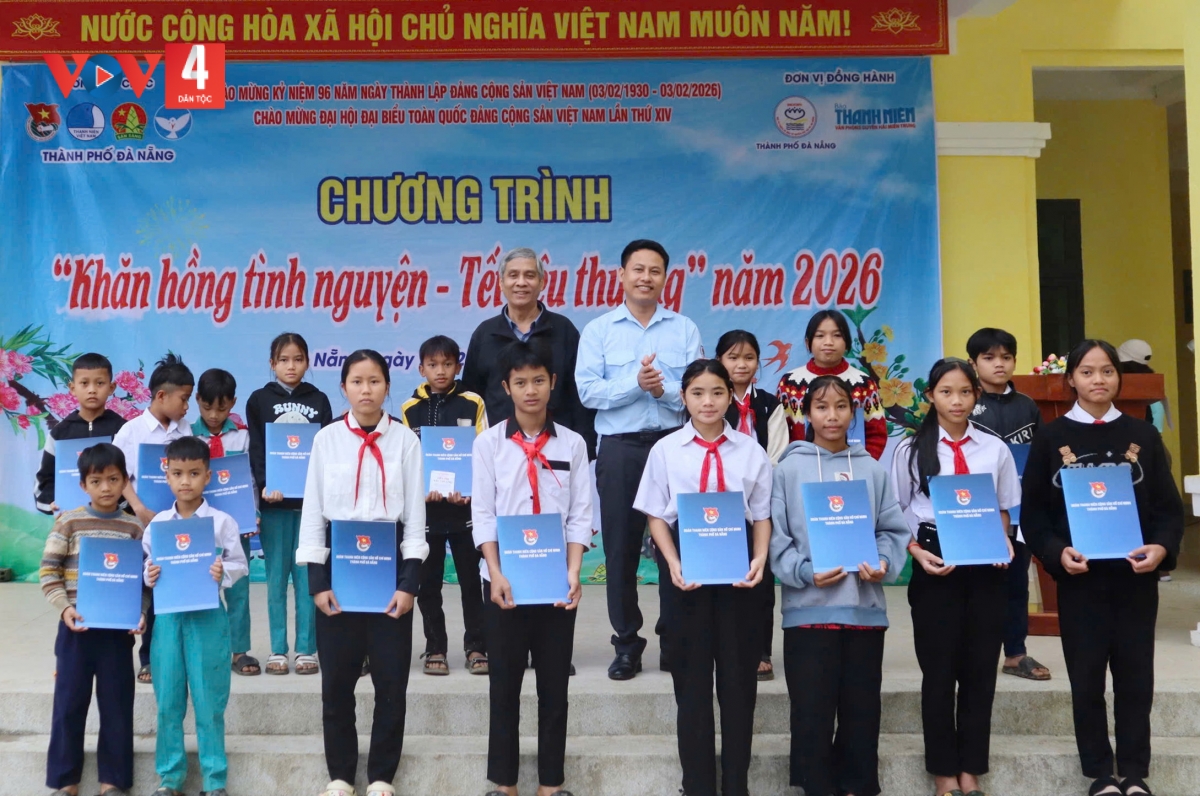 Thành Đoàn Đà Nẵng vừa tổ chức Chương trình “Khăn hồng tình nguyện – Tết yêu thương” năm 2026, trao quà Tết cho thiếu nhi và người dân nghèo tại hai xã miền núi Nam Trà My và Trà Đốc, thành phố Đà Nẵng.