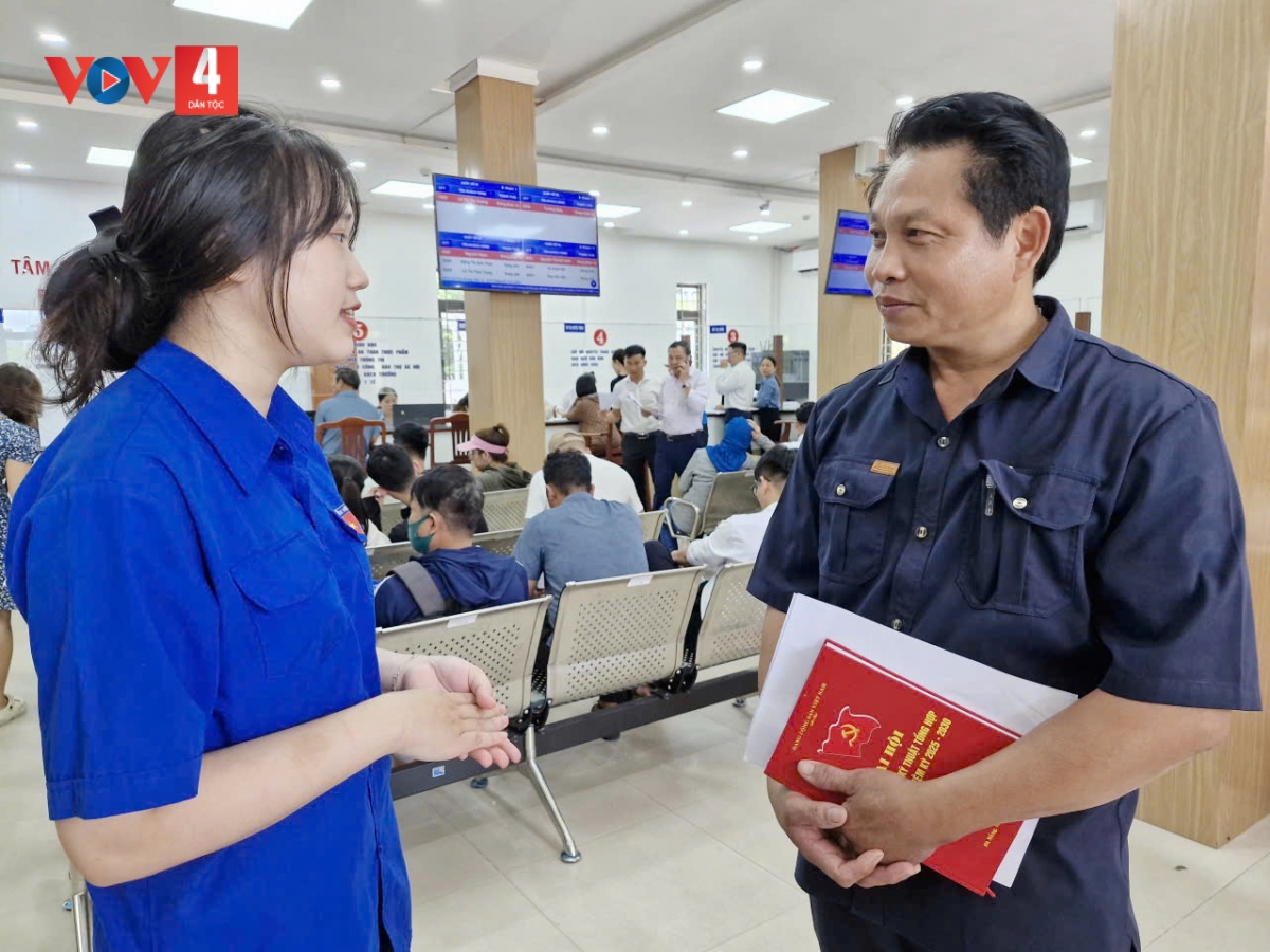 Ông Mai Tấn Vinh, người dân ở phường Hòa Khánh đến làm các thủ tục xác nhận lý lịch cho biết: Các bạn sinh viên, thanh niên tận tình hướng dẫn bấm số thứ tự nên công việc thông suốt, không chờ đợi lâu như trước đây.