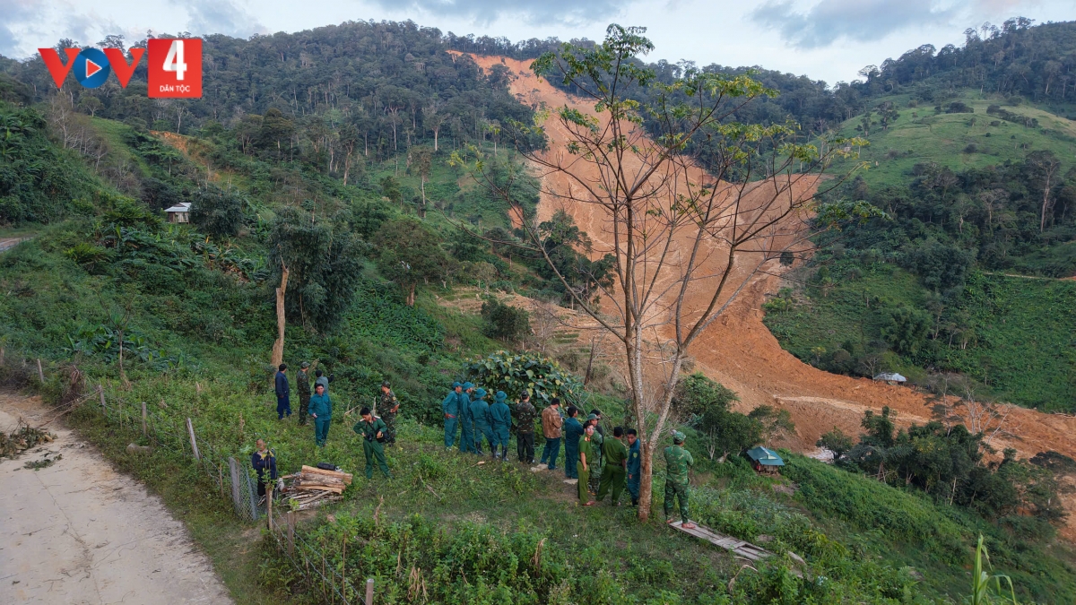 Hiện trường liên tục xuất hiện sạt trượt mới, đất đá từ trên núi tiếp tục đổ xuống, lực lượng chức năng buộc phải sử dụng flycam khảo sát từ xa, tạm thời chưa thể đưa người vào khu vực sạt lở để đảm bảo an toàn.