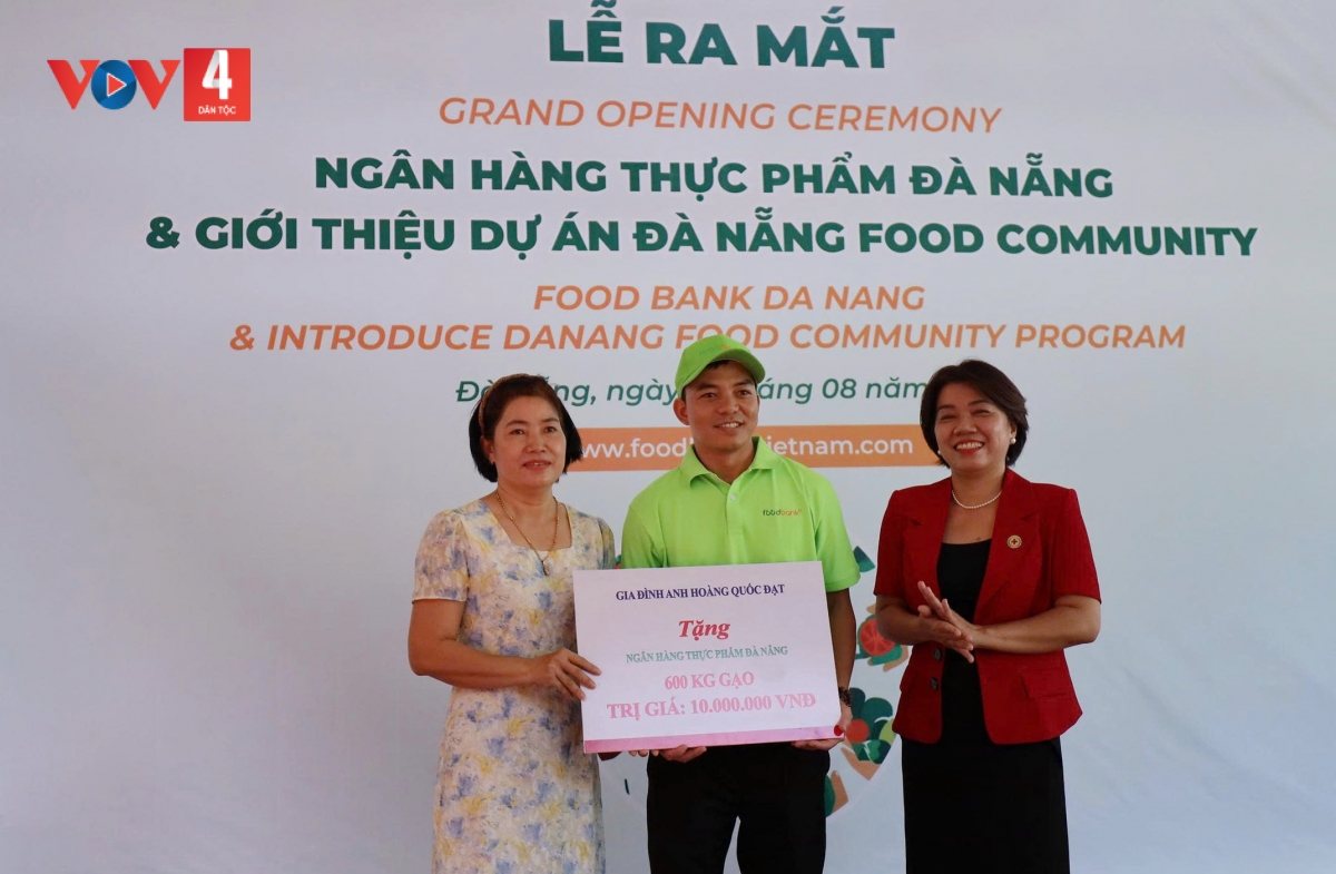 Tại lễ ra mắt Ngân hàng thực phẩm cộng đồng Đà Nẵng, nhiều nhà hảo tâm đến hỗ trợ, gạo, rau sạch, mì tôm, dầu ăn, nước mắm, bánh mì, tổng kinh phí hơn 100 triệu đồng.