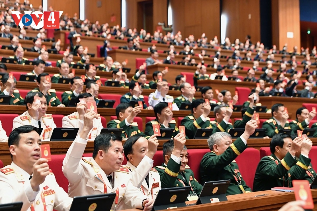 Đại hội đã biểu quyết tán thành, nhất trí cao thông qua Báo cáo thẩm tra tư cách đại biểu Đại hội XIV của Đảng do Ban Thẩm tra tư cách đại biểu trình. Theo đó, tất cả 1.586 đại biểu được triệu tập dự Đại hội đều đủ tư cách đại biểu Đại hội.