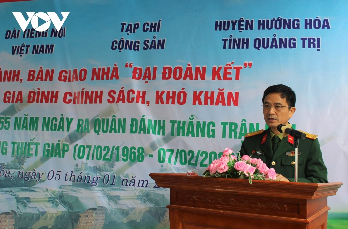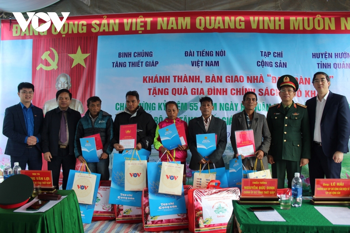 Tại huyện Hướng Hóa, tỉnh Quảng Trị, Đài Tiếng nói Việt Nam, Bộ Tư lệnh Tăng thiết giáp và Tạp chí Cộng sản phối hợp với huyện Hướng Hóa vừa tổ chức bàn giao 5 căn nhà Đại đoàn kết, tặng quà các gia đình chính sách, hộ gia đình khó khăn tại huyện Hướng Hóa. Đây là 1 trong các hoạt động chào mừng kỷ niệm 55 năm ngày Ra quân đánh thắng trận đầu của Bộ đội Tăng thiết giáp; 93 năm Ngày thành lập Đảng Cộng sản Việt Nam và đón chào xuân mới Quý Mão - 2023.