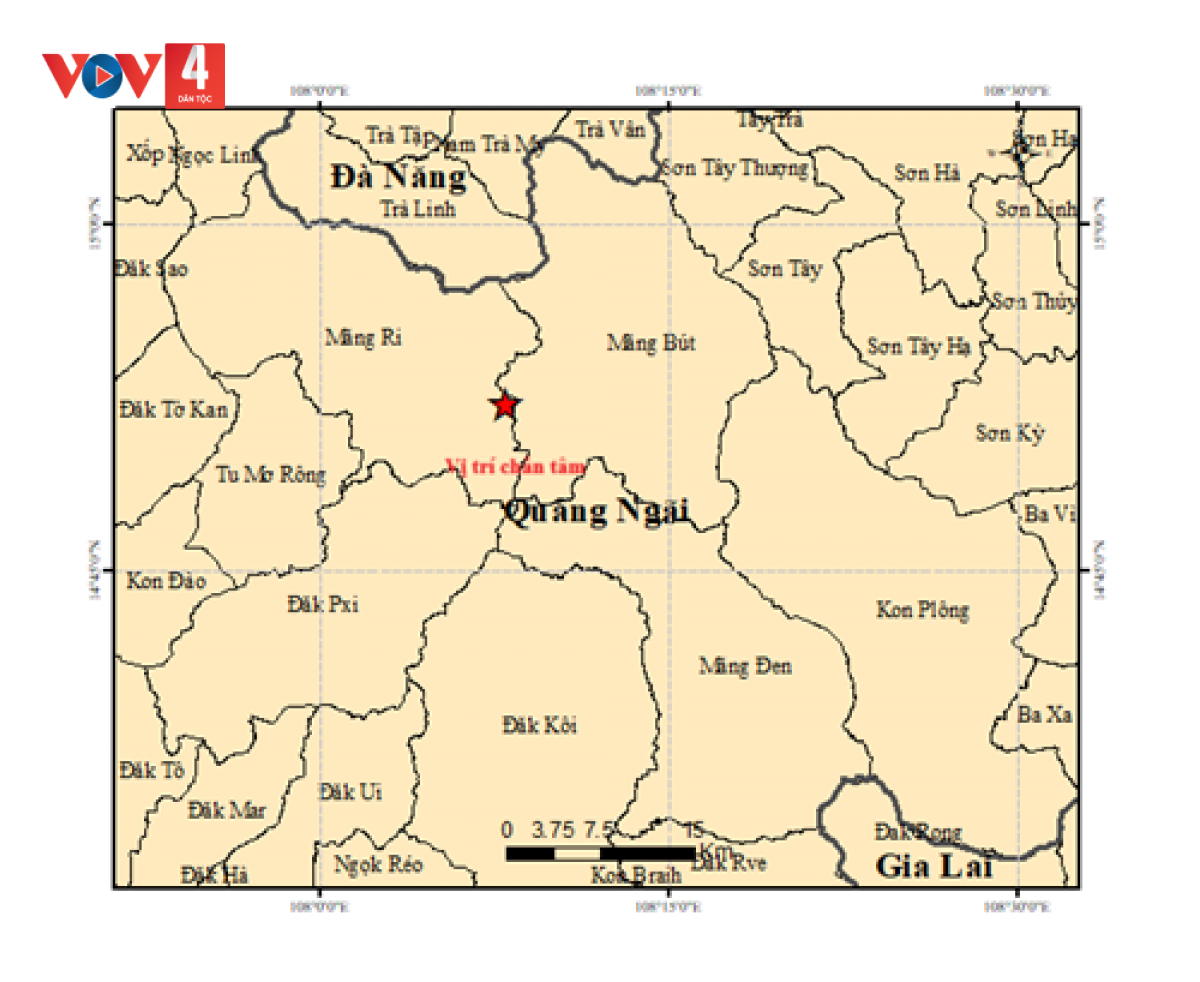 Trung tâm Báo tin động đất và Cảnh báo sóng thần (Viện Các khoa học Trái đất, Viện Hàn lâm Khoa học và Công nghệ Việt Nam) đã phát đi 4 thông báo về các trận động đất xảy ra tại hai xã Măng Bút và Măng Ri (tỉnh Quảng Ngãi). Trong đó, trận động đất lớn 4,9 độ richter được xác định có cấp độ rủi ro thiên tai cấp 1.