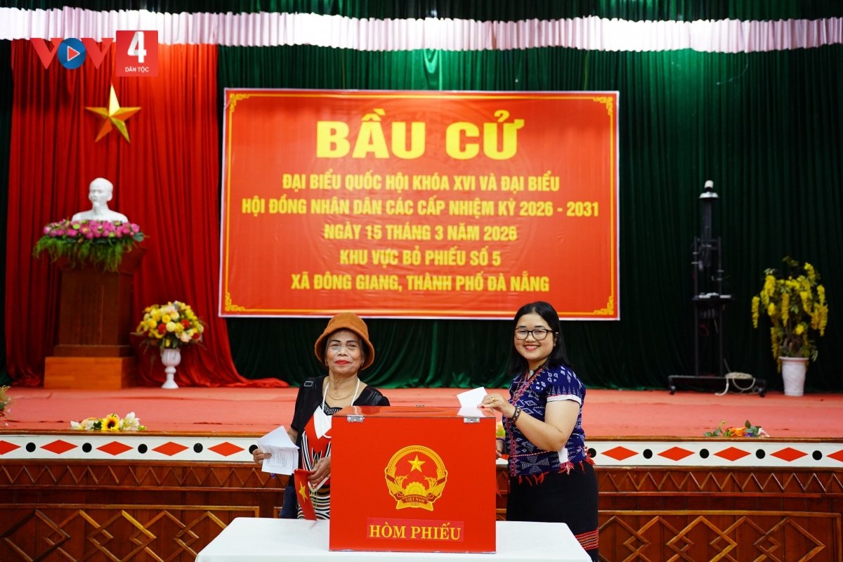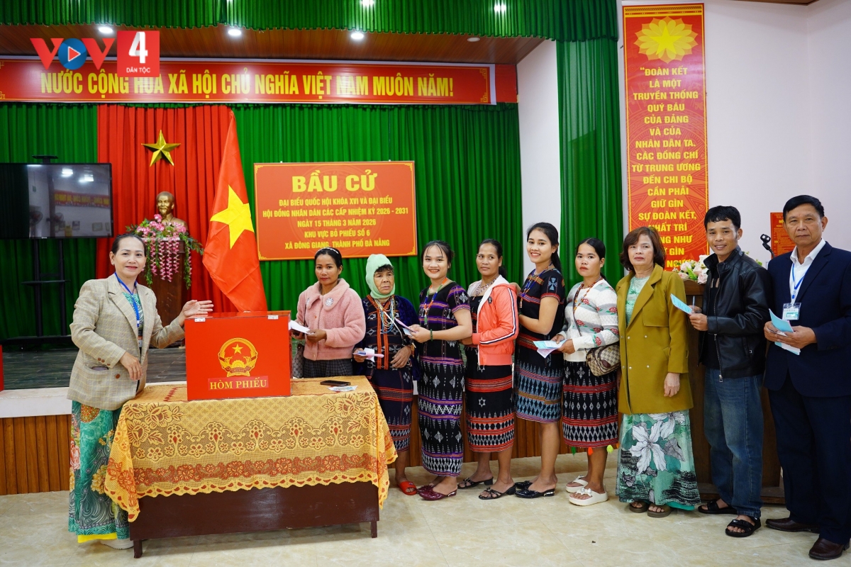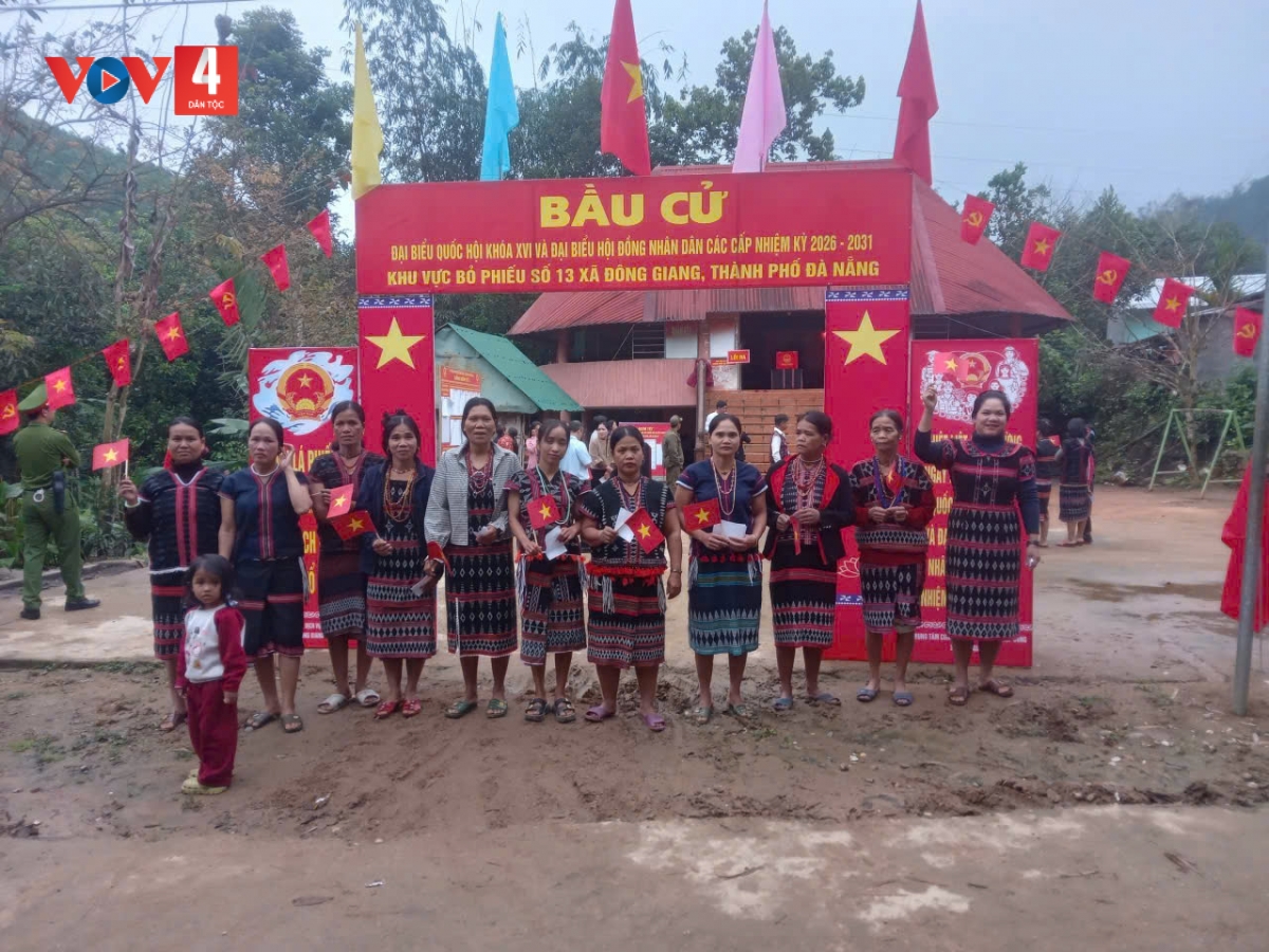 Hòa trong không khí “Ngày hội non sông” của cả nước, sáng 15/3, cử tri các thôn trên địa bàn xã Đông Giang trong trang phục thổ cẩm Cơ Tu nô nức, phấn khởi đi thực hiện nghĩa vụ và quyền lợi công dân, bỏ phiếu bầu cử đại biểu Quốc hội Khóa XVI và Hội đồng nhân dân các cấp nhiệm kỳ 2026 - 2031.