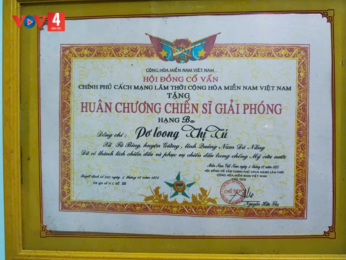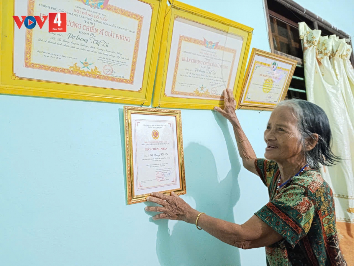 Bà Pơ Loong Thị Tú (78 tuổi) là thương binh 2/4, ở thôn Dung, xã Thạnh Mỹ. Năm 13 tuổi, bà tham gia cách mạng, gùi cõng đạn dược ra chiến trường. Những năm tháng chiến tranh ác liệt, bà nhiều lần đối mặt với lằn ranh sinh tử. Vết tích chiến tranh của mấy mươi năm về trước giờ vẫn luôn hành hạ bà mỗi lúc trái gió, trở trời.