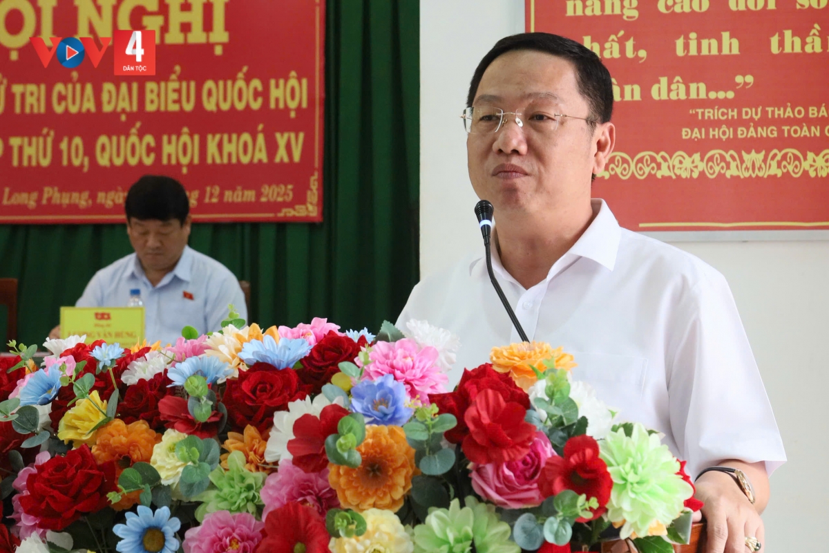 Cử tri kiến nghị nhiều nội dung về hạ tầng giao thông, đô thị, thương mại – dịch vụ và nước sạch; phản ánh một số tuyến, dự án chậm tiến độ như đường Dung Quất – Sa Huỳnh, tuyến Bầu Dài – Đá Bạc chưa kết nối Quốc lộ 1A, khu dân cư và kè Nam sông Vệ triển khai chậm; nhiều đoạn dọc sông Vệ chưa được kè nên thường xuyên sạt lở mùa mưa lũ, đe dọa tài sản người dân.