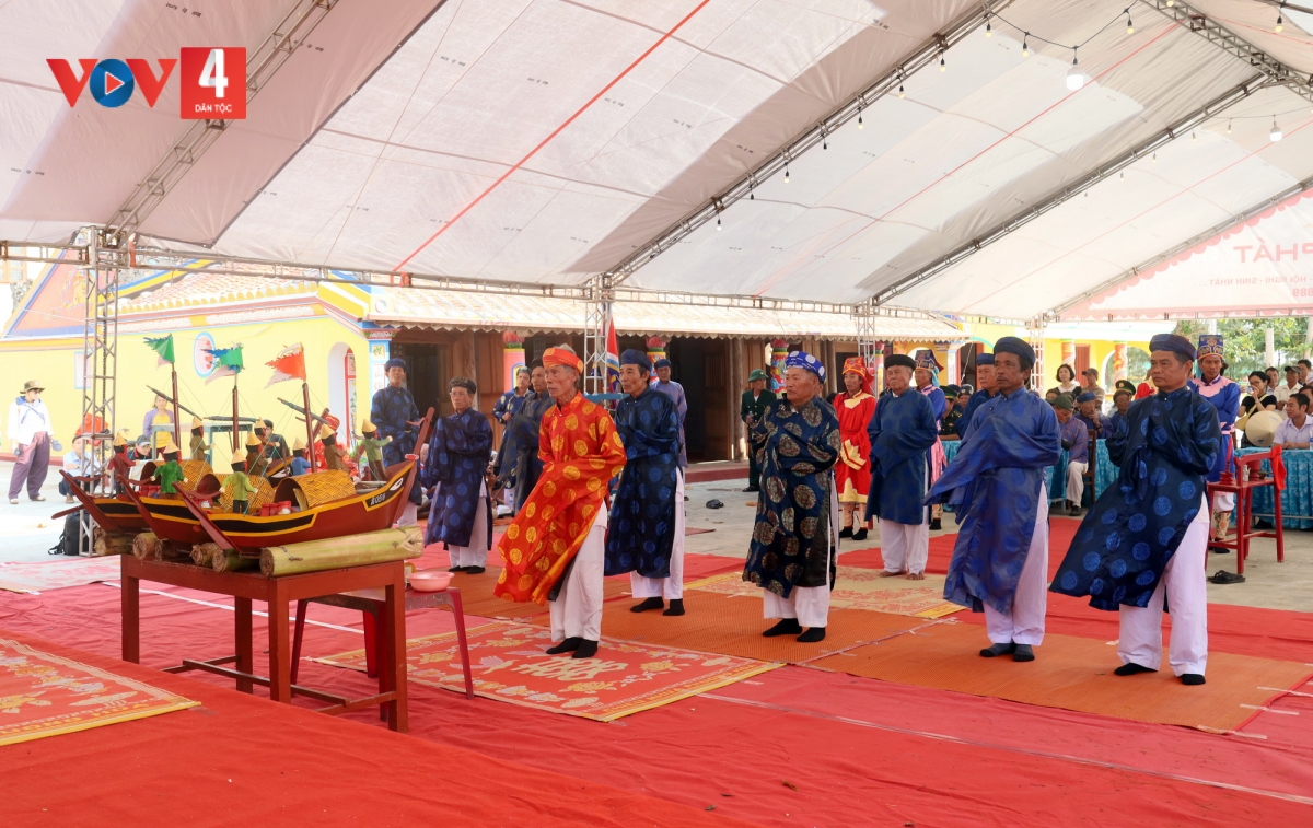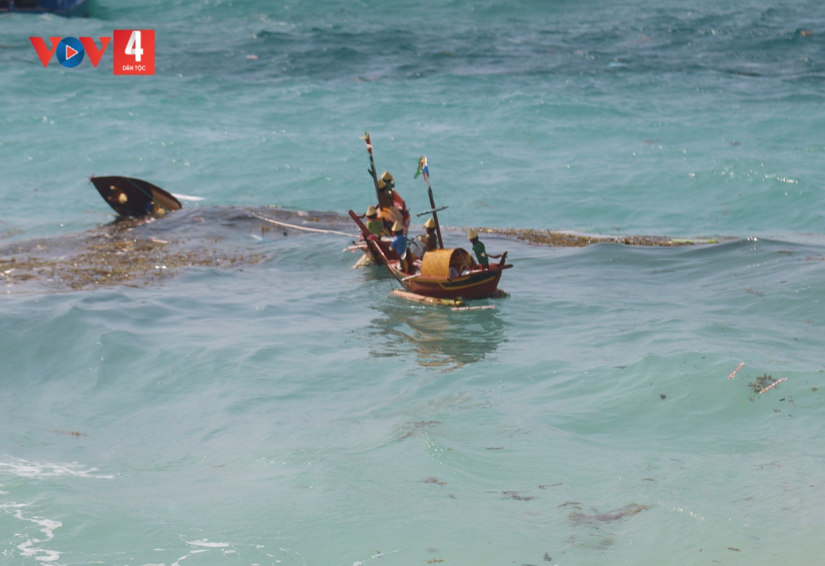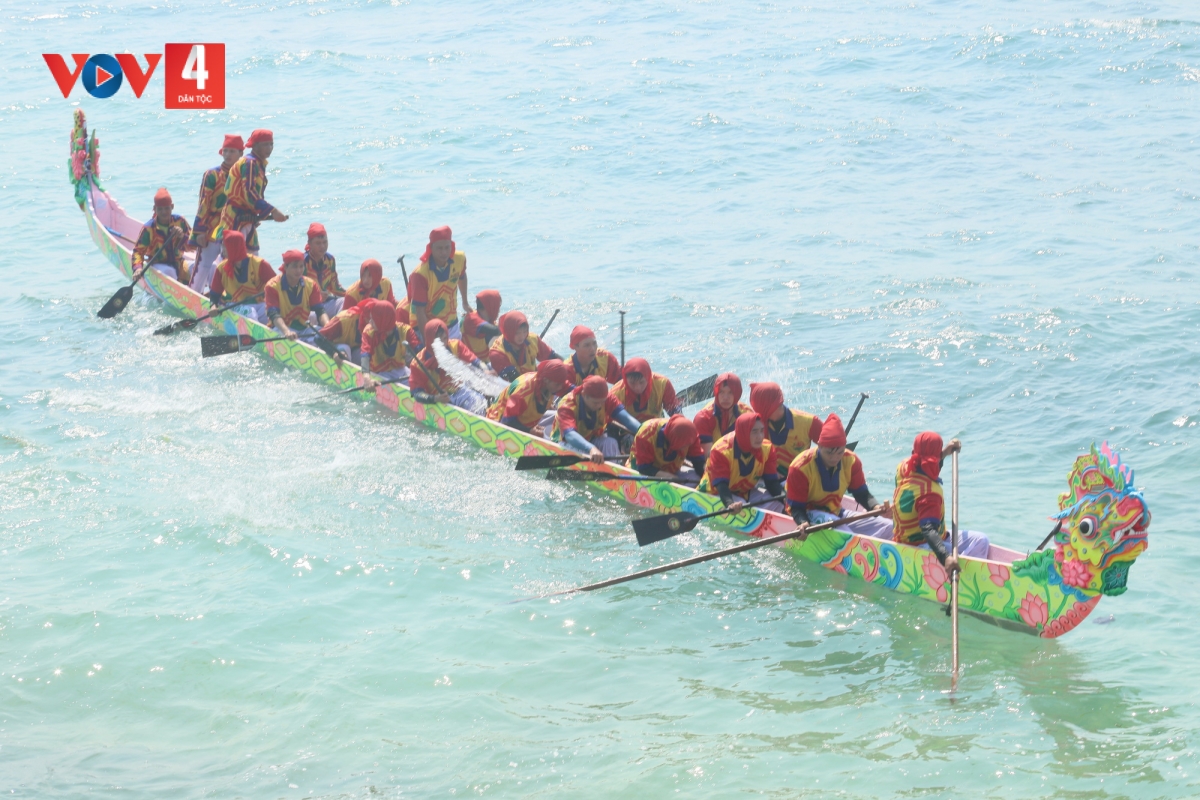 Sau phần lễ là nghi thức thả thuyền tế ra biển. Những con thuyền được đưa ra khơi, gửi gắm ước nguyện cho vong linh lính Hoàng Sa siêu thoát và cầu bình an cho cộng đồng. Lễ hội còn gắn với đua thuyền tứ linh truyền thống, thu hút hàng trăm người dân theo dõi./.