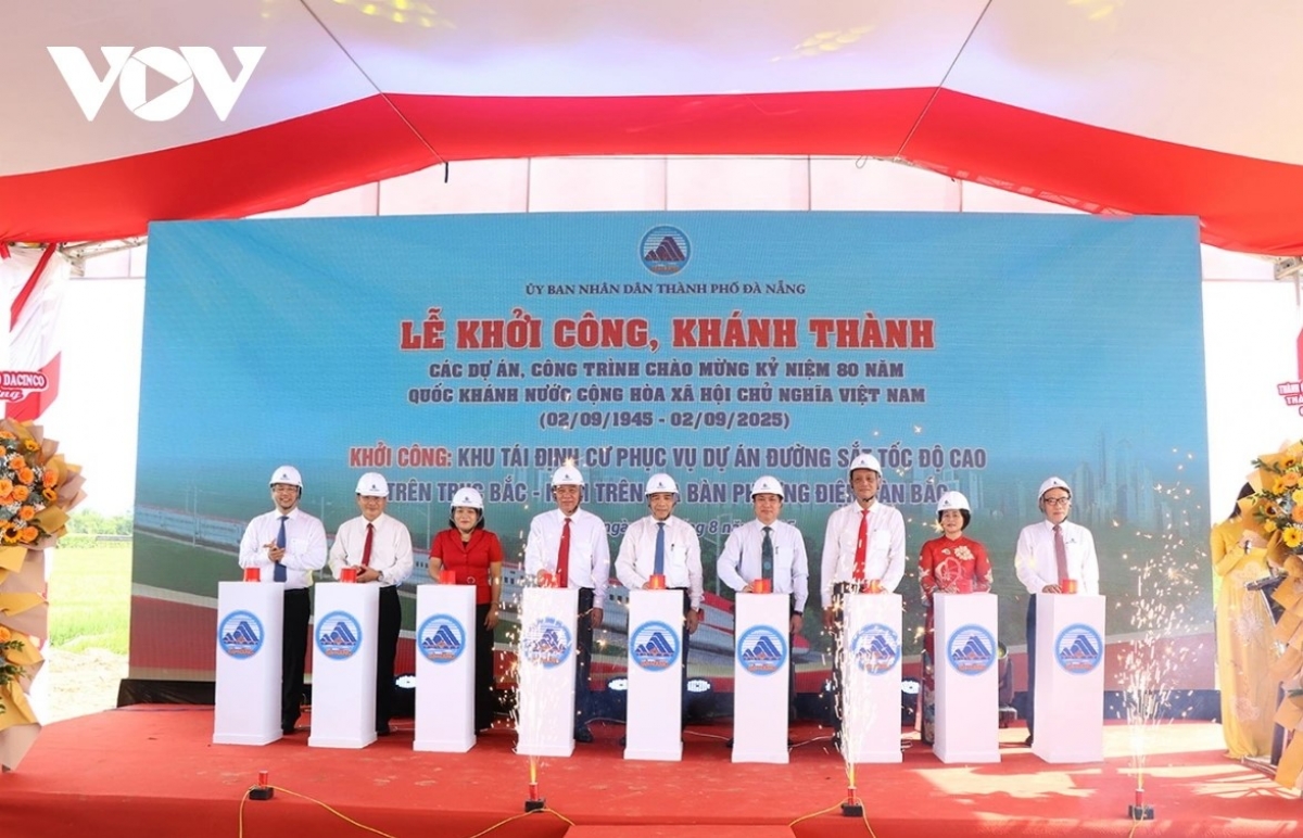+ Cũng trong sáng 19/8, UBND thành phố Đà Nẵng đã tổ chức lễ khởi công Khu tái định cư phục vụ dự án đường sắt tốc độ cao Bắc - Nam tại phường Điện Bàn Bắc, thành phố Đà Nẵng. Khu tái định cư rộng 47.000 m², tổng vốn đầu tư hơn 76 tỷ đồng, triển khai trong giai đoạn 2025–2027.