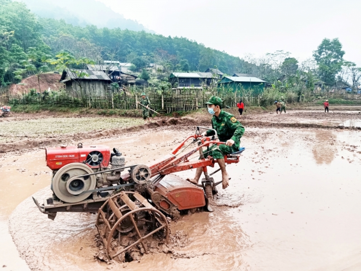 Những bản làng biên giới xa xôi, nơi sinh sống của nhiều bà con người Bru Vân Kiều, giao thông đi lại vô cùng khó khăn, hiểm trở. Có những nơi điện chưa thể kéo tới, ban đêm bản làng chìm trong đêm tối. Thượng tá Phạm Minh Dũng, Đồn trưởng Đồn Biên phòng Cà Roòng cho hay, Bộ đội và bà con phải gùi cõng vật liệu, thiết bị đi bộ băng qua những ngọn đồi, trèo đèo lội suối để lắp đặt điện mặt trời thắp sáng bản làng. Có điện thắp sáng, dân bản mừng lắm, ai cũng bảo những đứa con mang “quân hàm xanh” đã gùi điện về tới bản làng. Theo Thượng tá Phạm Minh Dũng, Bộ đội Biên phòng cùng người dân thực hiện tốt nhiệm vụ tuần tra, bảo vệ đường biên, cột mốc. "Đơn thành lập các tổ bảo vệ đường biên cột mốc, các tổ tự quản an ninh trật tự trên địa bàn. Đơn vị đẩy mạnh công tác tuyên truyền nhằm cho bà con nâng cao nhận thức bảo vệ chủ quyền lãnh thổ quốc gia, giữ vững đường biên cột mốc. Đơn vị cũng đã kết hợp trong các đợt tuần tra đường biên cột mốc có sự tham gia của công an và quân sự, chính quyền địa phương để nhận thức được biên giới quốc gia là thiêng liêng bất khả xâm phạm.”