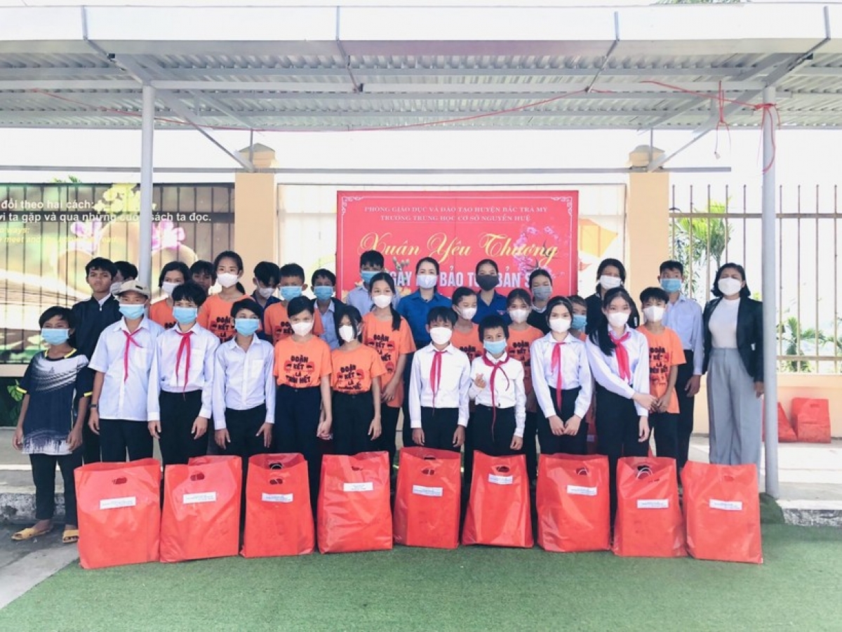Cô Phan Thị Thùy Trang, Hiệu trưởng trường THCS Nguyễn Huệ, huyện Bắc Trà My tâm sự, đối với những học sinh mồ côi, hoàn cảnh đặc biệt khó khăn, nhà trường thường xuyên hỗ trợ gạo, tương, mắm, muối… giúp các em yên tâm và cảm thấy ấm áp mỗi khi đến trường:“Phần lớn những em xa trường hoàn cảnh rất khó khăn, cha mẹ thường đi làm ăn xa, đóng luôn chòi trên rẫy, việc chăm lo cho các em nhiều cái chưa tới nơi. Vì thế, nhà trường phải làm tốt công tác quản lý học sinh nắm bắt xem các em có tới trường hay không, nếu các em khó khăn, thầy cô sẽ báo với trường để trích Quỹ Khuyến học hỗ trợ kịp thời cho các em.”