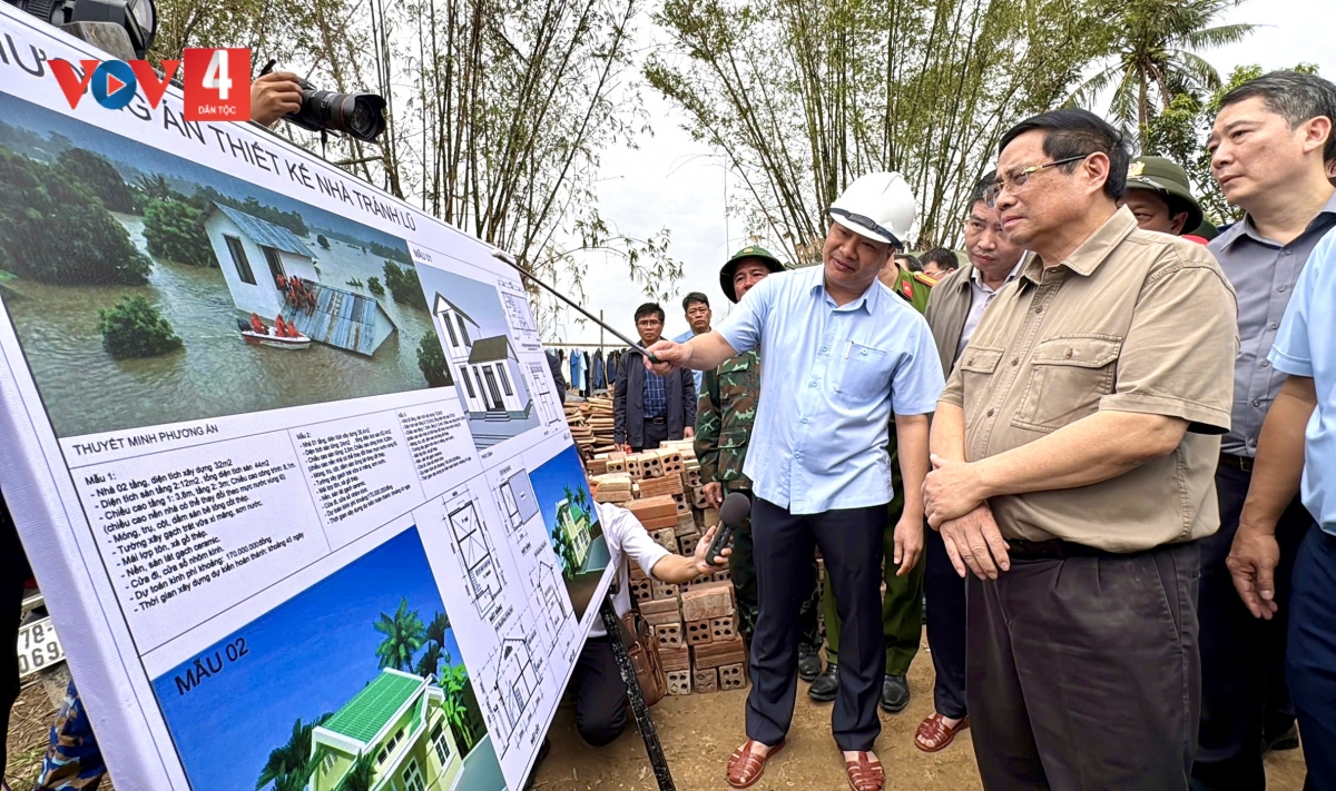 Thủ tướng nhấn mạnh yêu cầu tái cấu trúc nhà ở vùng lũ theo nguyên tắc “3 cứng”, đồng thời thiết kế dự phòng đủ lớn trước các kịch bản thiên tai cực đoan hơn. Bộ Xây dựng được giao thống nhất mẫu thiết kế, sử dụng khung bê tông hoặc khung thép sản xuất hàng loạt để rút ngắn thời gian thi công. Thủ tướng chỉ đạo: