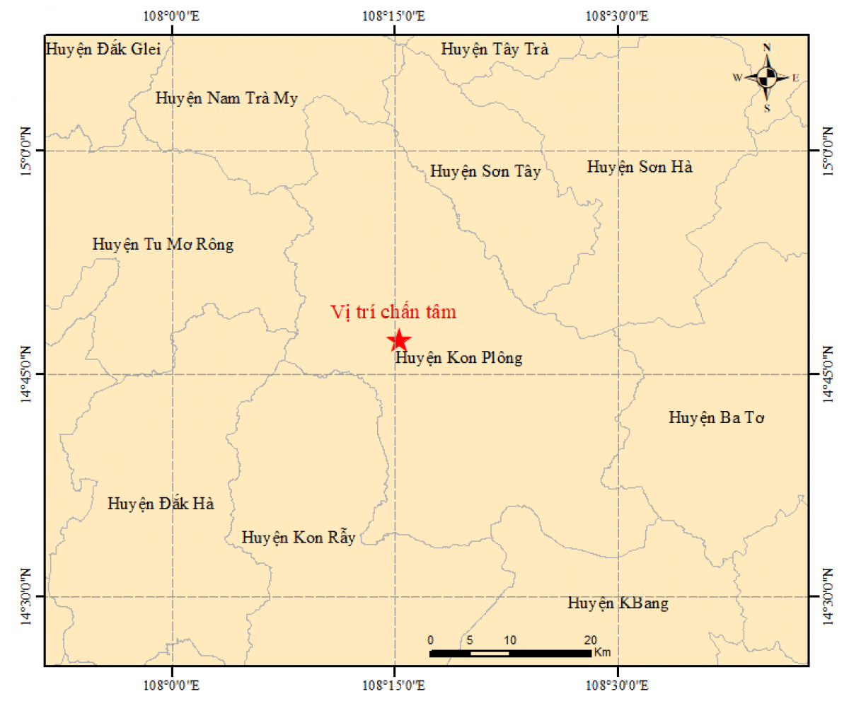 Trung tâm Báo tin động đất và cảnh báo sóng thần - Viện Vật lý Địa cầu, Viện Hàn lâm Khoa học và công nghệ Việt Nam vừa phát đi cảnh báo, một trận động đất có độ lớn 3.0 vừa xảy ra tại khu vực huyện Kon Plông, tỉnh Kon Tum. Trận động đất vừa được ghi nhận có độ sâu chấn tiêu khoảng 8,8 km. Cấp độ rủi ro thiên tai cấp 0.
