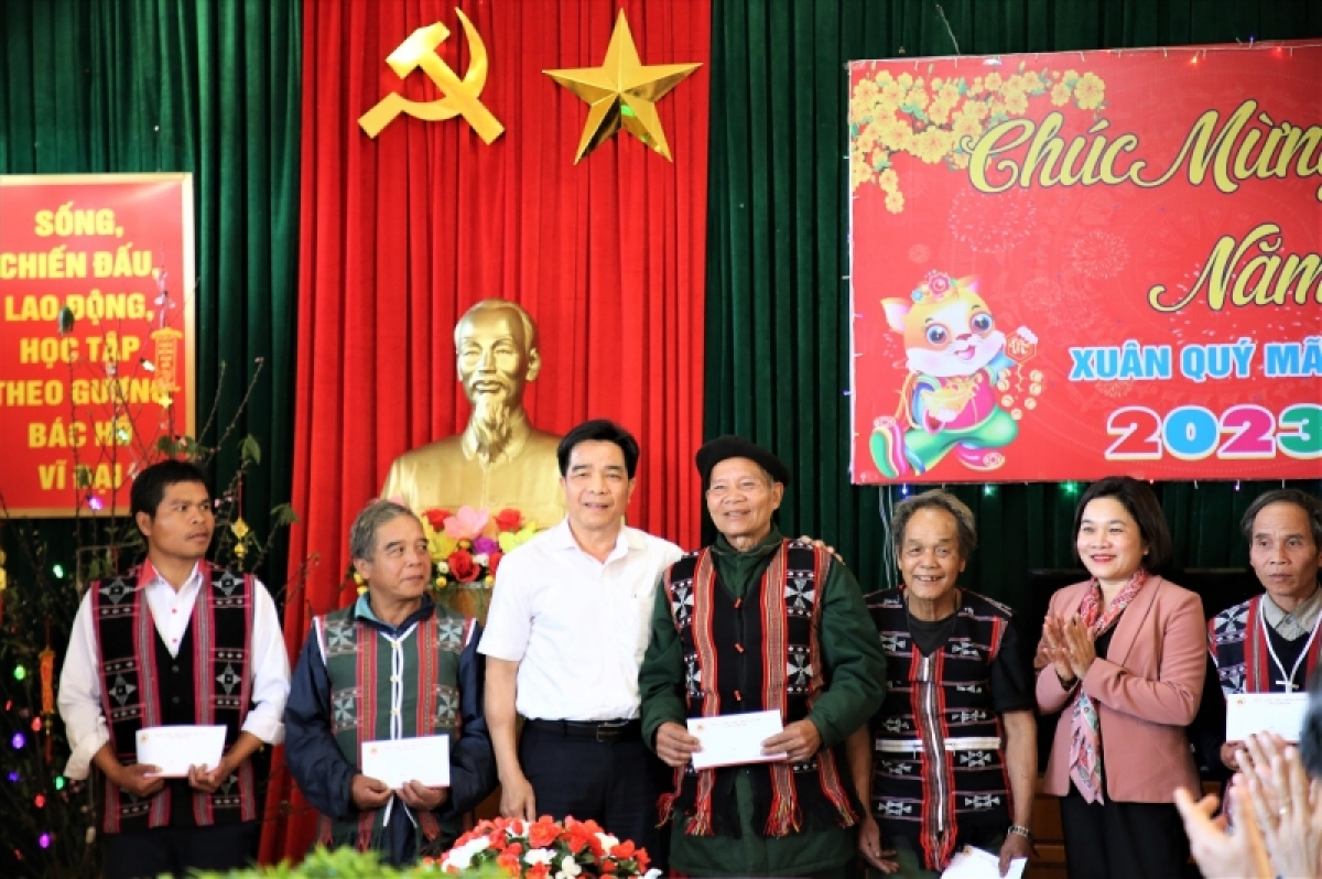 Tại huyện miền núi cao Nam Giang, già làng Alăng Nhứch, ở thôn Axòo, xã Chơ Chun, huyện Nam Giang vui mừng khi các cán bộ lãnh đạo tỉnh Quảng Nam đến tận những bản làng xa xôi tặng quà, thăm hỏi, động viên bà con vui đón xuân mới. Theo Già làng Alăng Nhứch thì các già làng, người có uy tín ở vùng cao luôn phát huy tinh thần nêu gương trong cộng đồng cùng nhau xây dựng cuộc sống ấm no: “Bà con Nhân dân vùng biên giới hỗ trợ cho các Đồn Biên phòng nào là bó củi, bó rau, lá dong hay con gà. Chủ yếu là tình cảm chứ không phải chỉ nằm ở vật chất. Ngoài ra trong dịp Tết chúng tôi cùng với các Đồn Biên phòng tổ chức giao lưu văn nghệ, thể dục thể thao, tổ chức thi gói bánh chưng, làm cổng trại để cùng giao lưu học hỏi. Các hoạt động này đều rất thiết thực.”