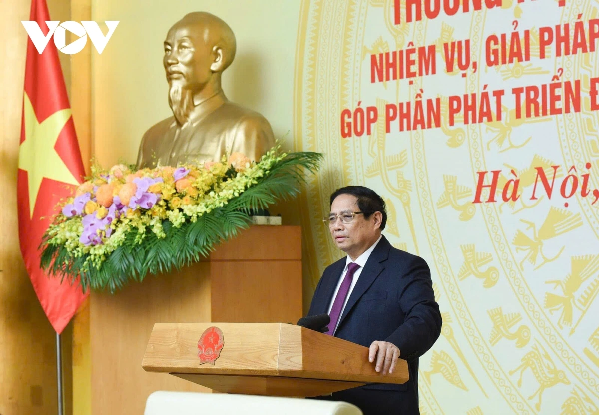 Phát biểu tại hội nghị, Thủ tướng Phạm Minh Chính khẳng định, Chính phủ rất chia sẻ với các doanh nghiệp trước các khó khăn và xác định luôn đồng hành, cùng tháo gỡ vướng mắc cho doanh nghiệp, nhất là các vướng mắc về thể chế đang là "điểm nghẽn của điểm nghẽn" nhưng cũng là "đột phá của đột phá". Thủ tướng cho biết, Chính phủ có kế hoạch gặp gỡ với các ngân hàng, doanh nghiệp vừa và nhỏ, các doanh nghiệp FDI để chia sẻ, giải quyết những khó khăn, vướng mắc về thể chế, cơ chế chính sách, góp ý cho Chính phủ, các bộ, ngành, địa phương; lắng nghe ý kiến của các doanh nghiệp về những việc phải làm trước mắt và trong tương lai để tiếp tục phát triển. Chính phủ cũng đã chỉ đạo các Bộ trưởng, Thủ trưởng cơ quan ngang bộ phải tiếp tục rà soát, hằng tháng báo cáo những vướng mắc về thể chế để báo cáo cấp có thẩm quyền sửa đổi như vấn đề: miễn thuế trước bạ cho các doanh nghiệp sản xuất ô tô, miễn thuế VAT cho doanh nghiệp, miễn giảm tiền thuê đất, thuê mặt nước, thuế, phí, lệ phí; giải quyết các vấn đề liên quan đến quy hoạch, đất đai, thủ tục, giấy phép và điều này rất cần có sự đóng góp ý kiến của các doanh nghiệp.
