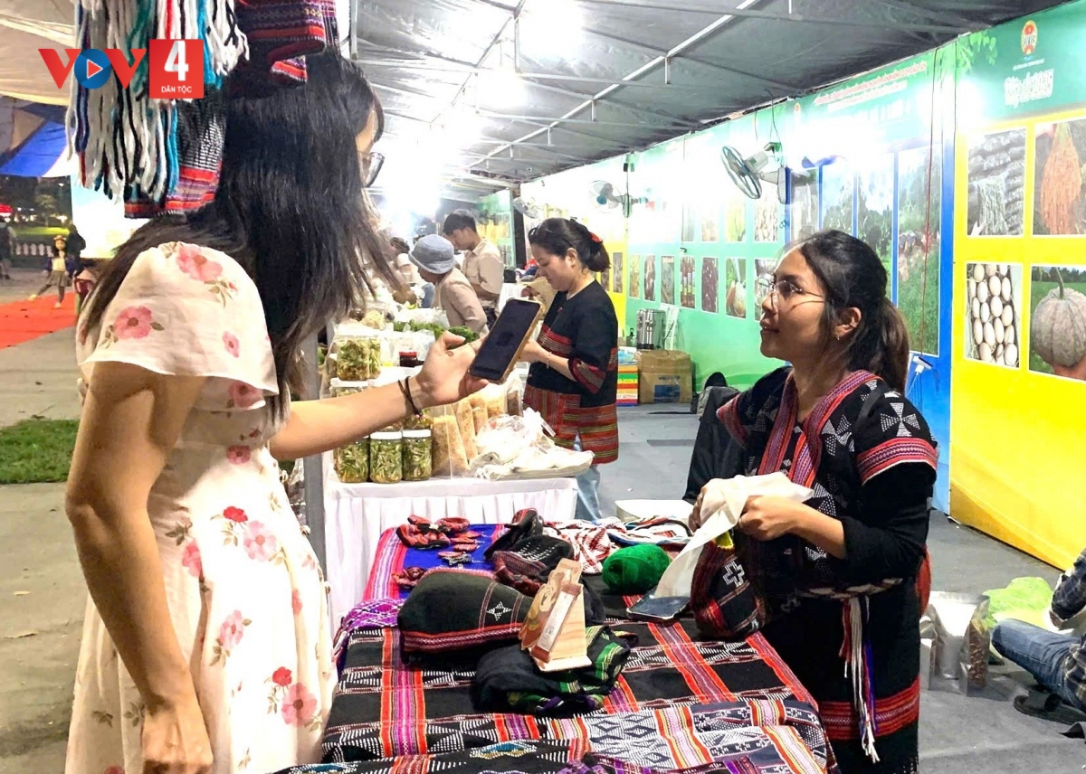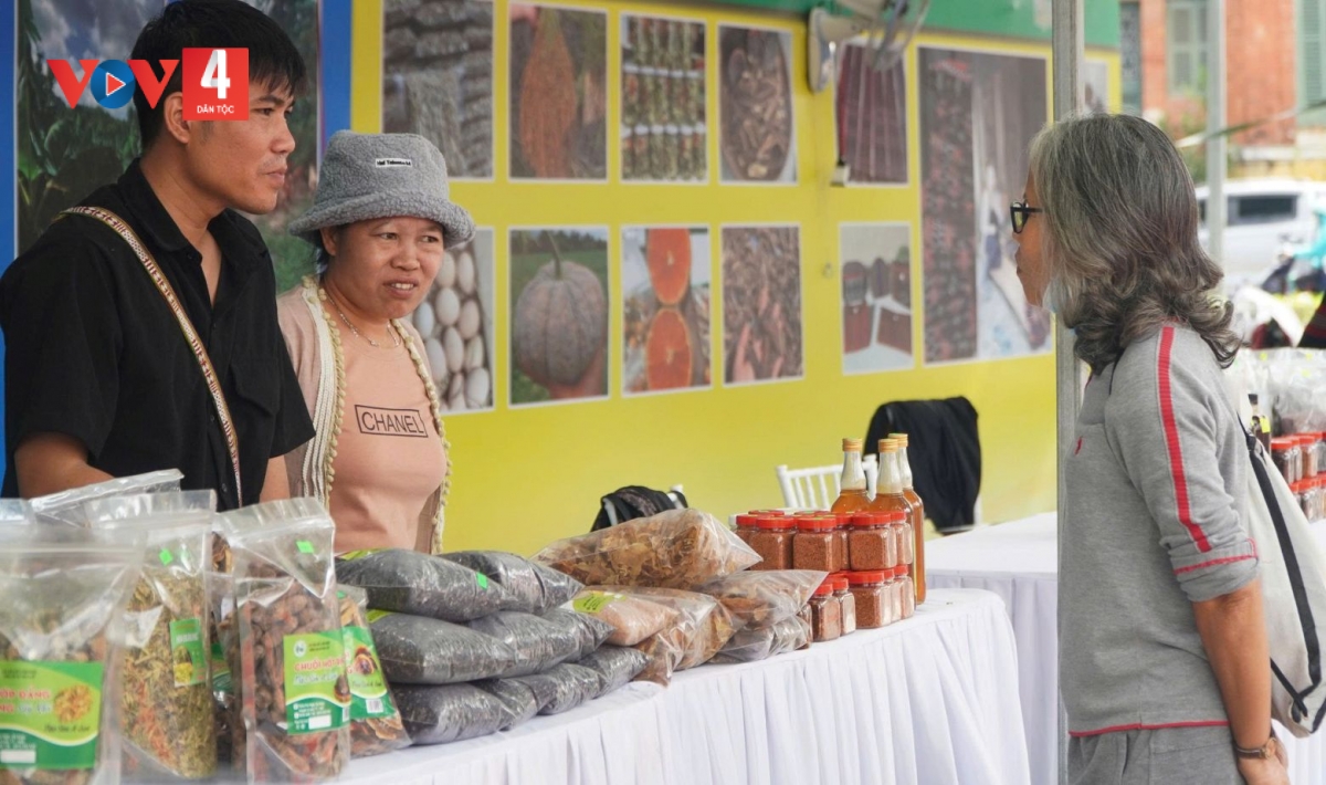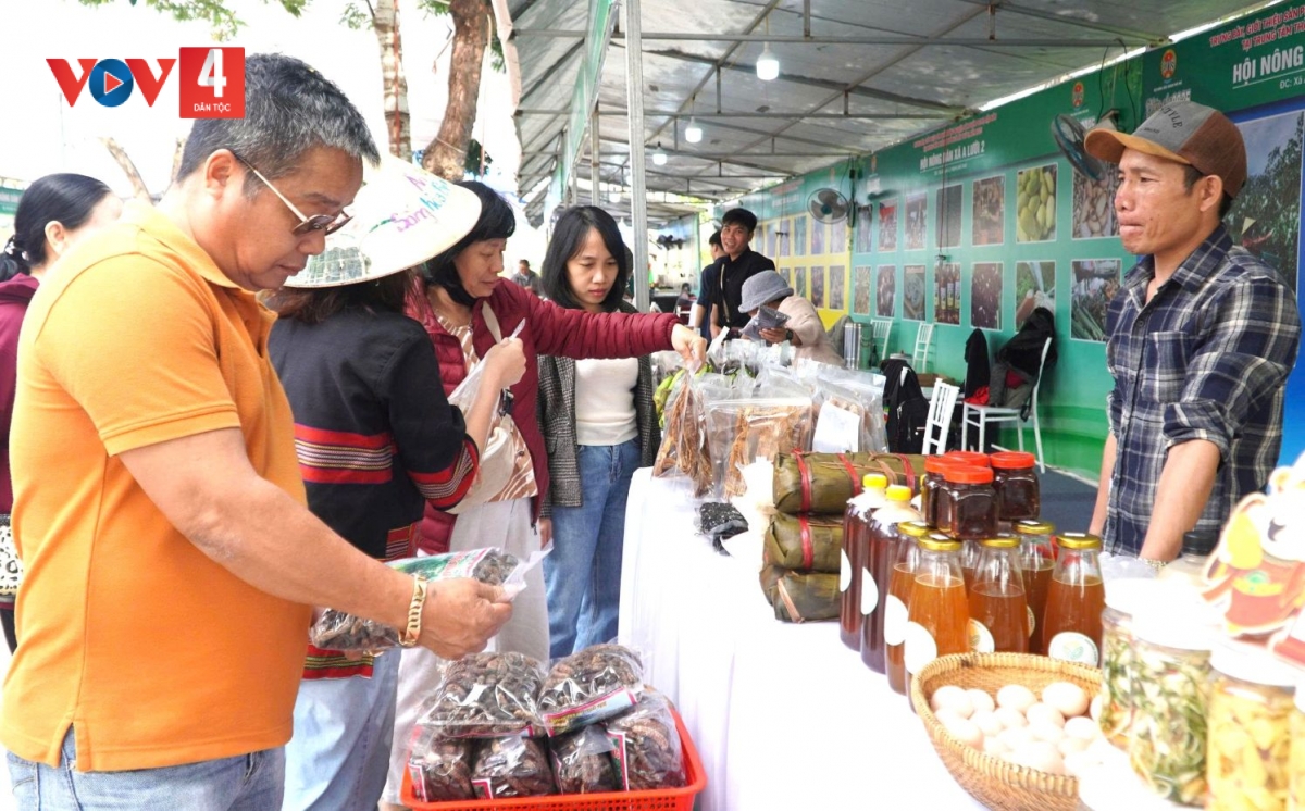 Các gian hàng trưng bày đa dạng các loại nông sản sạch, an toàn, mang đậm bản sắc vùng cao như nếp than, các loại nấm dược liệu, mật ong rừng, sản phẩm thảo dược, thủ công mỹ nghệ.