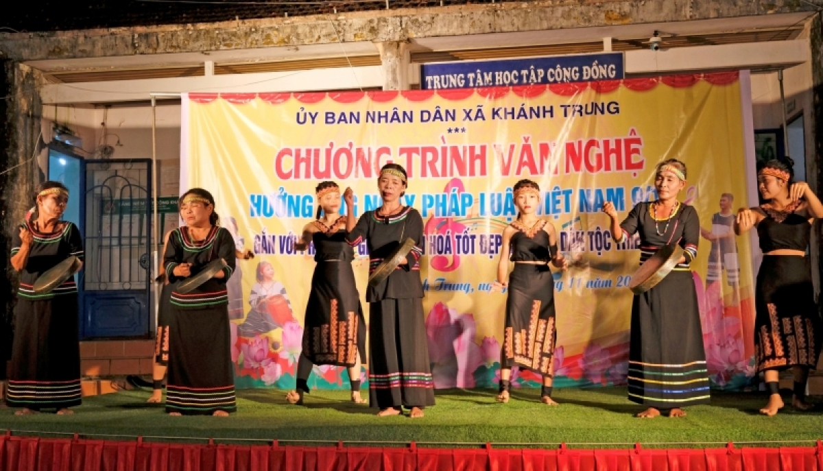 Đêm “đại đoàn kết” ở Khánh Trung không chỉ có văn hóa văn nghệ mà còn lồng ghép hoạt động tuyên truyền pháp luật đến bà con địa phương. Cách tuyên truyền cũng không khô khan, cứng nhắc mà được lồng ghép bằng cuộc thi, hỏi đáp có thưởng khiến bà con hào hứng tham gia. Bà Cao Thị Ngọc Thanh, Bí thư Đảng ủy xã Khánh Trung, huyện Khánh Vĩnh, tỉnh Khánh Hòa cho biết, những đêm hội ý nghĩa không chỉ được tổ chức vào dịp “Đại đoàn kết toàn dân”, mà hàng tháng, địa phương tổ chức nhiều hoạt động văn hóa, văn nghệ nhằm tái hiện, duy trì các nghệ thuật dân gian truyền thống, đặc thù. “Thông qua các dịp, tổ chức các buổi sinh hoạt văn hóa, giao lưu văn nghệ mang đậm bản sắc văn hóa dân tộc, giúp tất cả dân tộc trên địa bàn có sự đoàn kết, học hỏi những nét văn hóa đặc trưng của nhau để cùng nhau phát huy và tiến bộ hơn. Tập hợp được các dân tộc anh em trên địa bàn thông qua các lễ hội, tuyên truyền các vấn đề dân tộc, pháp luật cho đồng bào thiểu số.”