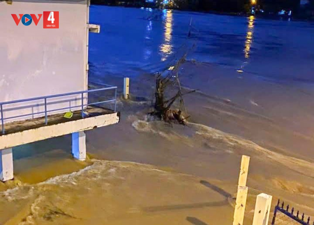 Sáng ngày 4/12, nước lũ trên sông Cái Nha Trang tiếp tục dâng cao sau một đêm mưa lớn, nhiều khu dân cư bị ngập lụt, trường học phải cho học sinh nghỉ học.