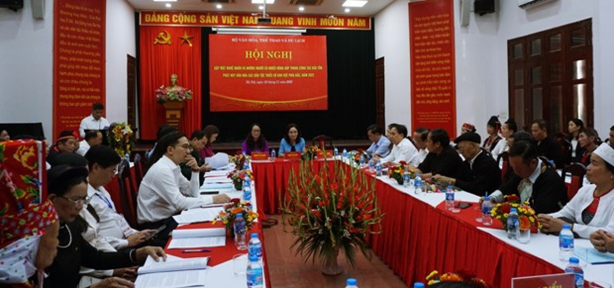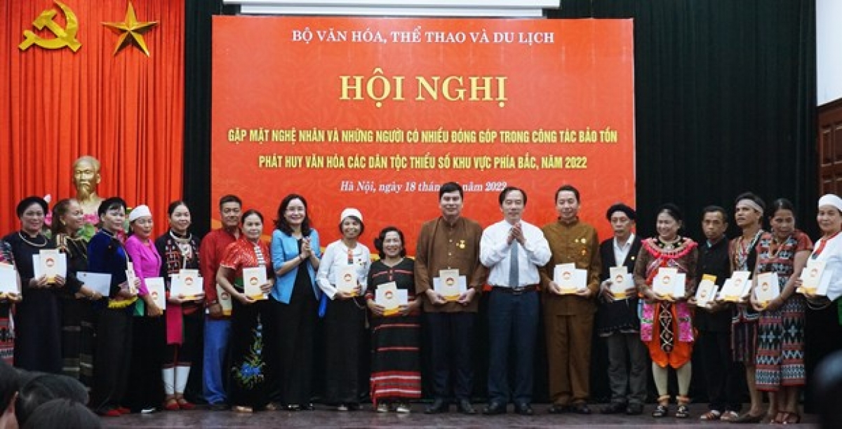 Mới đây, tại Làng Văn hóa - Du lịch các dân tộc Việt Nam (Đồng Mô, Sơn Tây, Hà Nội), Bộ Văn hóa, Thể thao và Du lịch phối hợp với các bộ, ngành Trung ương và các địa phương khu vực phía Bắc tổ chức Hội nghị “Gặp mặt nghệ nhân và những người có nhiều đóng góp trong công tác bảo tồn, phát huy văn hóa các dân tộc thiểu số khu vực phía Bắc năm 2022”.