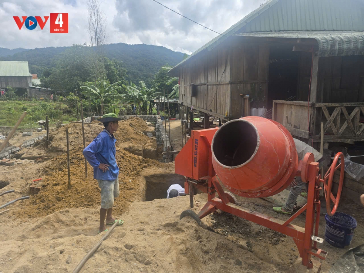 Đã gần trưa, vợ chồng chị Đinh Thị Lá (29 tuổi) vẫn miệt mài cùng thợ hồ, vận hành máy trộn xi măng để xây dựng ngôi nhà mới. Đây là một hình ảnh hiếm thấy trước đây, nhưng nay đã trở nên quen thuộc khi bà con nhanh chóng đưa máy móc vào sử dụng, giảm bớt sức lao động và đẩy nhanh tiến độ. Chị Lá xúc động, cuộc sống ngôi làng bao năm buồn tẻ, nay đã thay đổi hoàn toàn. Tối đến, điện sáng cả làng, trẻ con ê a học bài, cả làng bỗng vui hẳn lên: