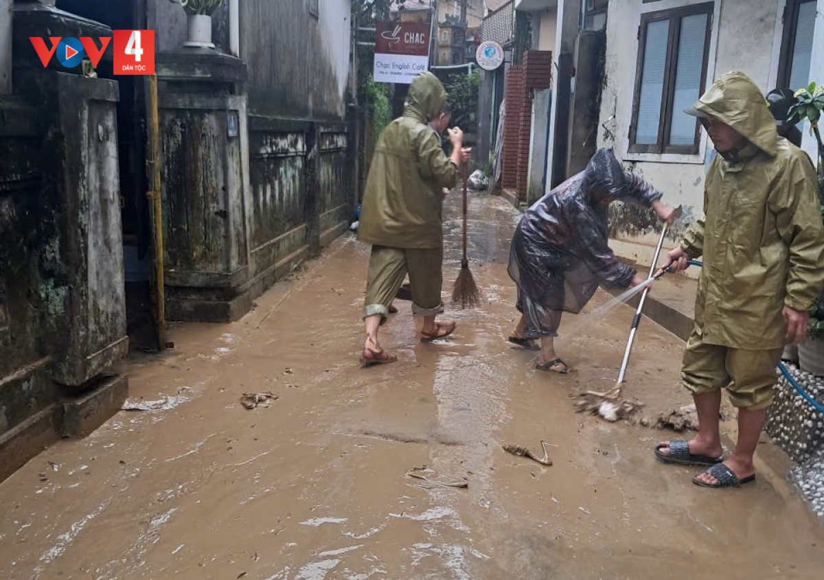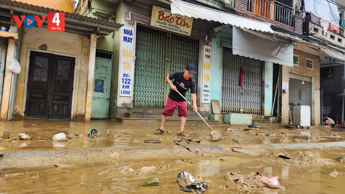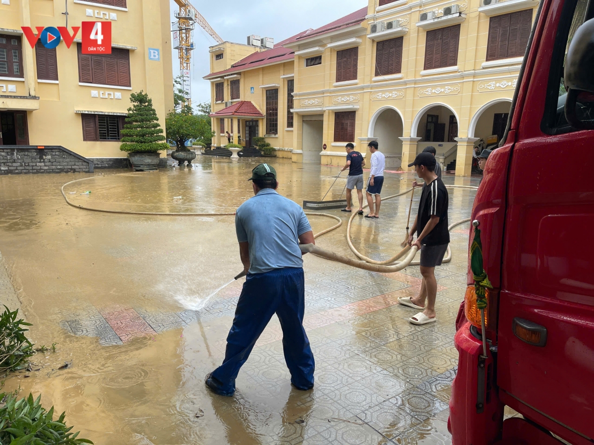 Sau nhiều ngày mưa lũ lớn, sáng 30/10, miền Trung trời đã ngớt mưa, nước lũ rút chậm. Người dân tranh thủ dọn dẹp bùn non. Đây là lần thứ 2 trong đợt lũ lần này, người dân thành phố Huế dọn bùn non sau khi nước lũ rút. Trên các đường phố chính như Ngô Quyền, Bùi Thị Xuân, Nguyễn Sinh Cung, Đống Đa, Nguyễn Huệ, nhiều nơi ngập rác và bùn non.
