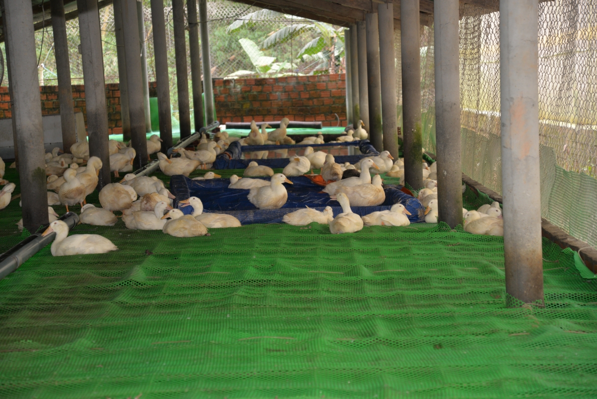 Với 5 hecta cây ăn quả có sẵn, gia đình trồng thêm 2 hecta cỏ, đầu tư chuồng trại nuôi 15 con trâu và 4 chuồng nuôi giun quế. Tổng diện tích 120 mét vuông, chăn nuôi khép kín tuần hoàn. Gia đình nuôi trâu bò vỗ béo, phân trâu được sử dụng nuôi giun quế và giun quế được phục vụ trồng cỏ, cây ăn quả và làm thức ăn cho trâu, không bỏ qua bất kỳ khâu sản xuất nào, tận dụng tối đa phế thải nông nghiệp, vừa nâng cao hiệu quả sản xuất, bảo vệ môi trường sinh thái. Đây là một mô hình chăn nuôi theo quy trình khép kín, với chi phí đầu tư thấp, dễ triển khai thực hiện. Mô hình rất phù hợp để nhân rộng, vừa giải quyết vấn đề môi trường, nâng cao thu nhập cho các hộ chăn nuôi.