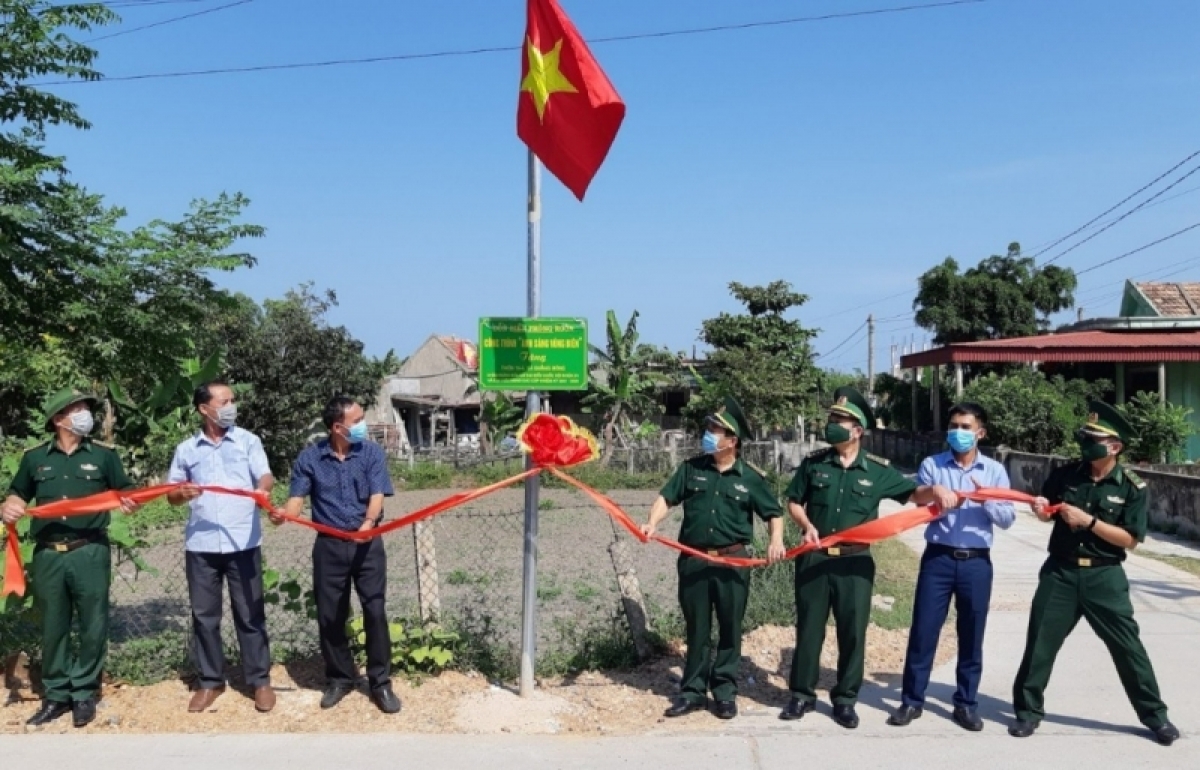 Với quan điểm “dễ trước khó sau, trên dưới cùng làm”, Bộ đội Biên phòng tỉnh Quảng Bình đã quyết tâm xây dựng mô hình “Ánh sáng vùng biên”. Tại bản Cồn Roàng, xã Thượng Trạch, huyện Bố Trạch, tỉnh Quảng Bình chưa có đường ô tô vào bản. Cán bộ, chiến sĩ Đồn Biên phòng Cồn Roàng tự nguyện trích lương và kêu gọi tài trợ để xây dựng mô hình “Ánh sáng vùng biên”. Bộ đội Biên phòng và bà con dân bản phải gùi cõng gần 2 tấn vật liệu, thiết bị đi quãng đường hơn 5km đồi núi, đèo dốc để thi công công trình. Từ 36 bộ cột đèn sử dụng năng lượng mặt trời, trải dài gần 2 cây số, công trình “Ánh sáng vùng biên” đã thắp sáng cả bản Cồn Roàng. Ông Lê Công Toán, Bí thư Huyện ủy Bố Trạch, tỉnh Quảng Bình cho biết, Bộ đội Biên phòng góp phần nâng cao đời sống vật chất, tinh thần của đồng bào trong điều kiện nguồn xây dựng cơ sở hạ tầng, công trình dân sinh của địa phương còn hạn chế:“Lực lượng Bộ đội Biên phòng quan tâm thực hiện tốt công tác dân vận, xây dựng các mô hình dân vận như giúp đồng bào trồng lúa nước, xây dựng “Ánh sáng vùng biên”, xây đường bê tông... Có thể khẳng định rằng, Bộ đội Biên phòng là cầu nối giữa cấp ủy, chính quyền và nhân dân, góp phần xây dựng nền quốc phòng toàn dân vững mạnh.”