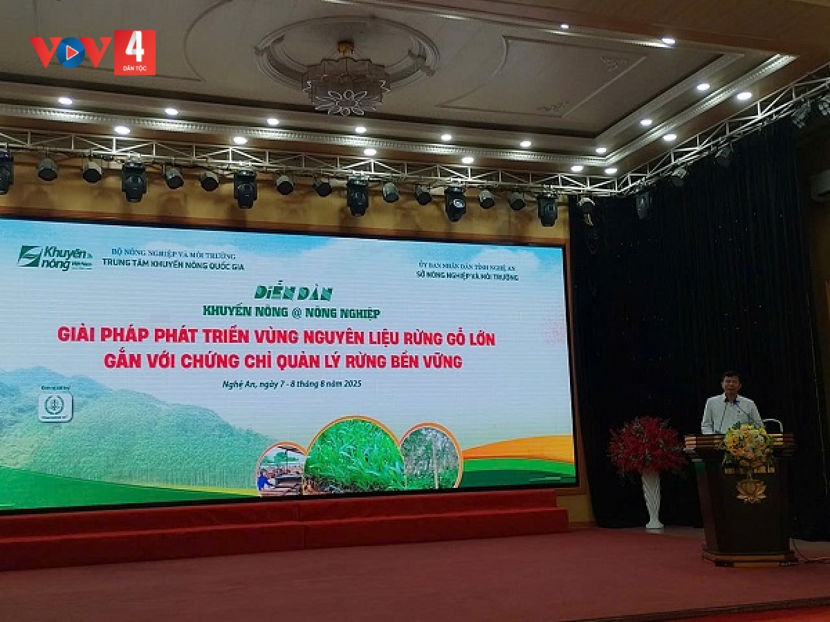 Tại tỉnh Nghệ An, Trung tâm Khuyến nông Quốc gia (Bộ Nông nghiệp và Môi trường) phối hợp với Sở Nông nghiệp và Môi trường Nghệ An tổ chức Diễn đàn Khuyến nông @ Nông nghiệp với chủ đề “Giải pháp phát triển vùng nguyên liệu rừng gỗ lớn gắn với chứng chỉ quản lý rừng bền vững”.