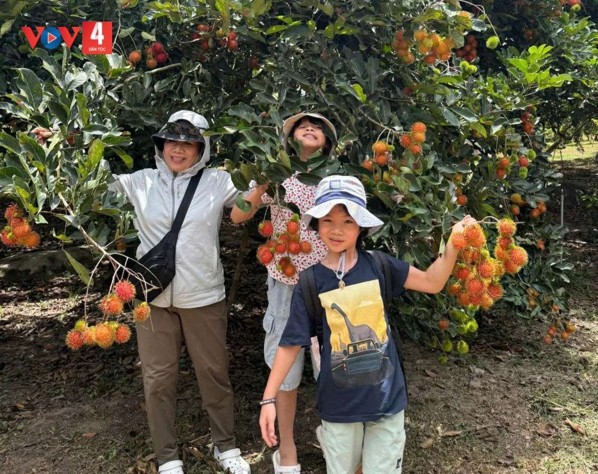 Cuối tháng 7, mùa sầu riêng chín rộ, Khánh Sơn đón rất nhiều du khách từ khắp nơi tìm về. Chị Nguyễn Thị Luyến, du khách đến từ Hưng Yên thích thú khi có chuyến trải nghiệm nhà vườn tại Khánh Sơn: