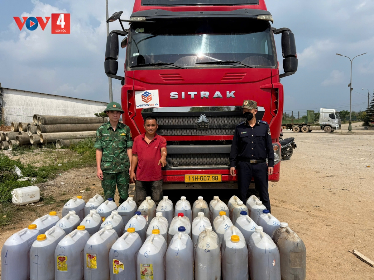 Giấu gần 900 lít dầu dưới gầm rơ-moóc chở qua biên giới bán kiếm lời