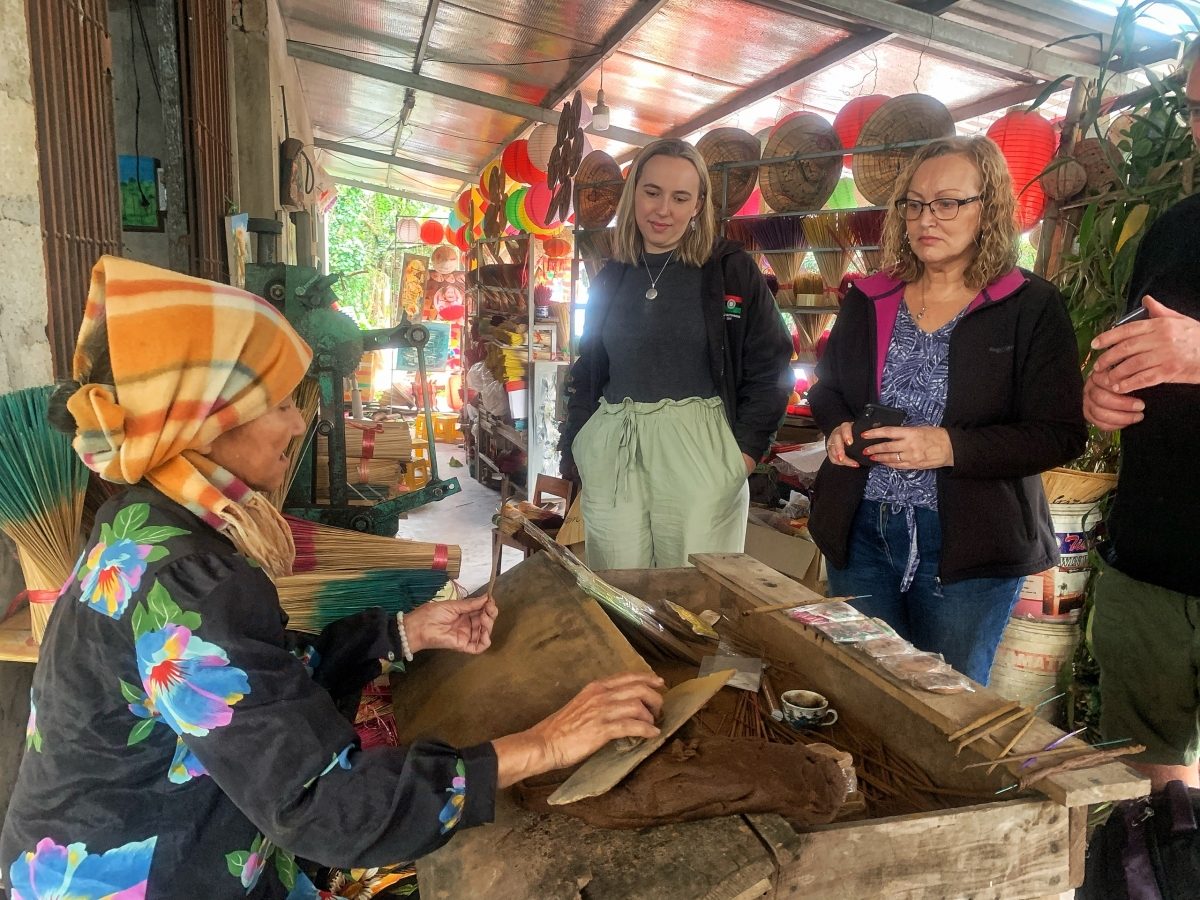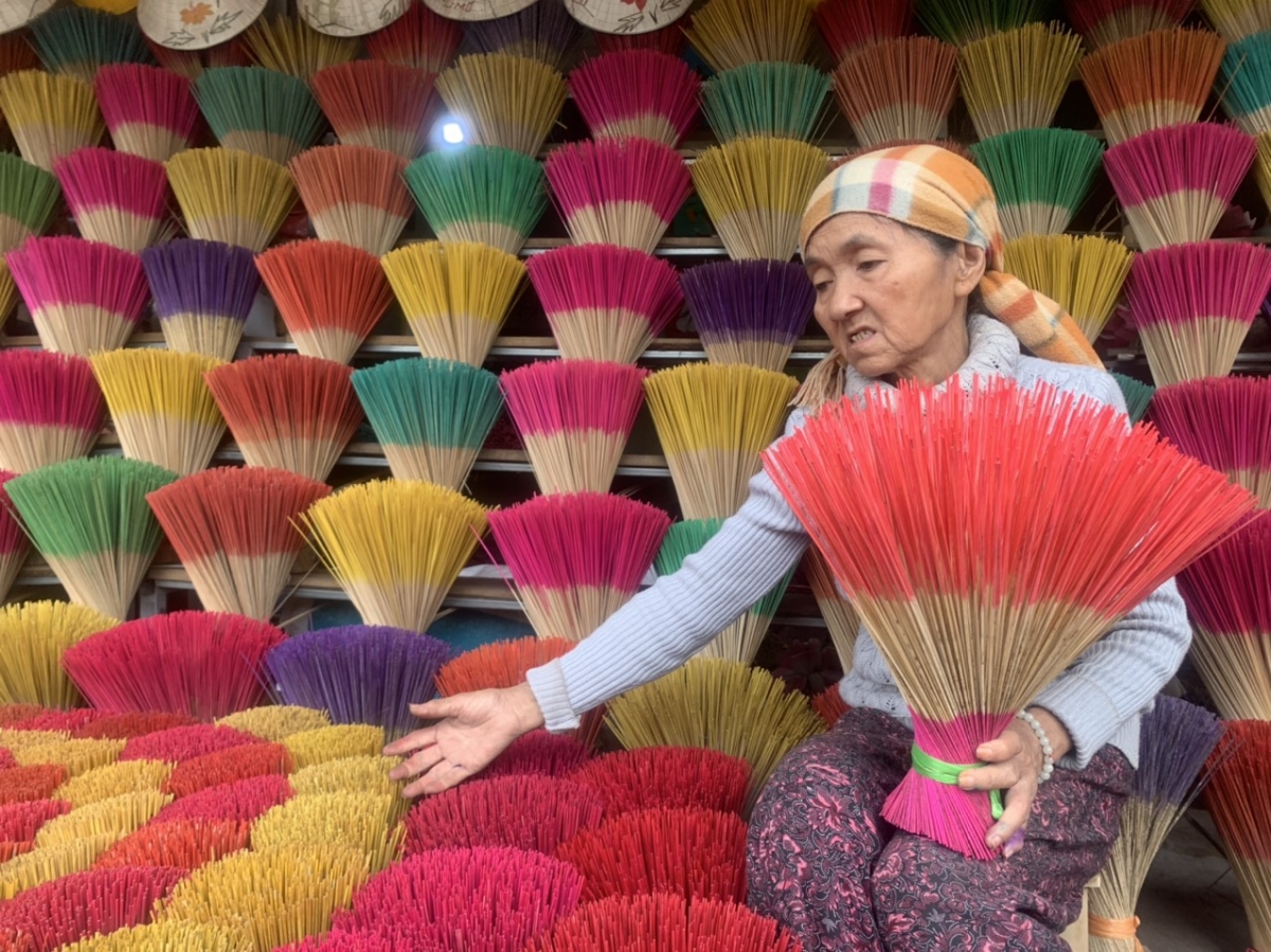 Làng nghề làm hương Thủy Xuân nằm trên tuyến tham quan du lịch lăng Tự Đức, đồi Vọng Cảnh, là điểm lựa chọn của du khách gần xa khi đến Huế. Với mệ Tuyết, được làm công việc lan tỏa nghề truyền thống của làng đến với du khách, có thêm thu nhập, giúp đỡ các bệnh nhân nghèo là niềm hạnh phúc. Nhiều du khách đến làng hương tìm mệ Tuyết để được nghe câu chuyện suốt 10 năm dành phần lớn lợi nhuận, tặng trẻ em mắc bệnh hiểm nghèo ở Bệnh viện Trung ương Huế và mong muốn góp chút tình yêu thương, qua mệ gửi đến những con người kém may mắn. Bà Trần Thị Hoàng Vi, hướng dẫn viên du lịch Huế Student Tour cho hay: Hơn 4 năm nay Huế Student Tour đều đặn đưa khách nước ngoài đến quán mệ Tuyết, tham quan làng hương, khám phá các công đoạn làm hương bằng thủ công và góp một phần nhỏ để mệ làm từ thiện. “Bên em đưa khách như là Úc, Singapre, Đức, Mỹ… Giới thiệu những vẽ đẹp của làm hương và khách làm hương luôn. Nếu khách họ cảm thấy ấn tượng với công việc thiện nguyện của mệ làm và muốn góp một phần nhỏ nhỏ vào đó thì họ có thể mua một số món quà lưu niệm, để mệ lan tỏa công việc thiện nguyện của mệ.”