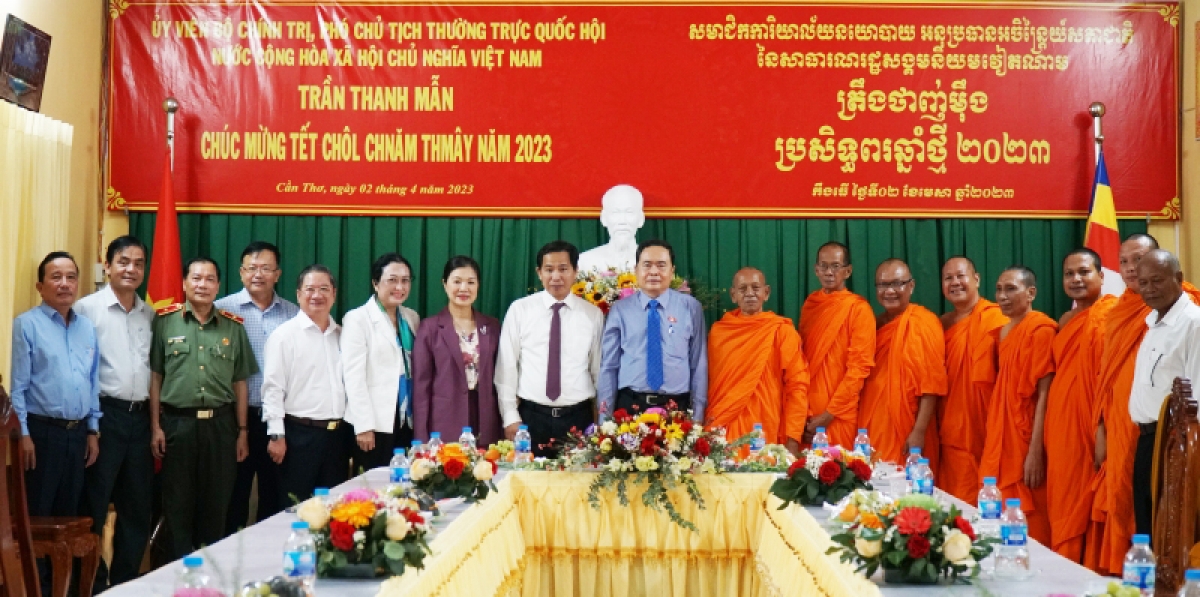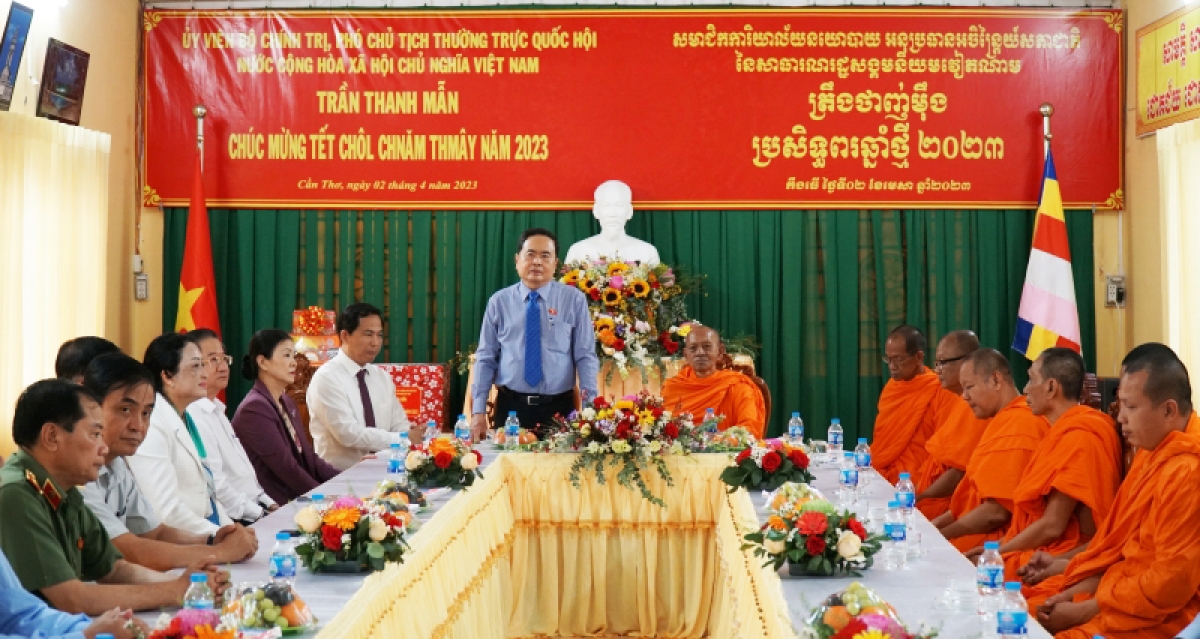 Đến thăm Học viện Phật giáo Nam Tông Khmer, thay mặt lãnh đạo Đảng, Nhà nước, Phó Chủ tịch thường trực Quốc hội Trần Thanh Mẫn đã trân trọng gửi lời thăm hỏi ân cần và lời chúc tốt đẹp nhất đến các vị chức sắc, sư sãi, tăng sinh và đồng bào Khmer. Ông Trần Thanh Mẫn đề nghị thành phố Cần Thơ tiếp tục quan tâm, chăm lo đời sống cho đồng bào nhiều hơn nữa, có kế hoạch thăm hỏi, động viên, kịp thời giúp đỡ các hộ Khmer nghèo, hoàn cảnh khó khăn được hưởng trọn vẹn Tết Chôl Chnăm Thmây trong không khí yên vui, đầm ấm, để không một người dân, một gia đình đồng bào Khmer nào không có Tết.