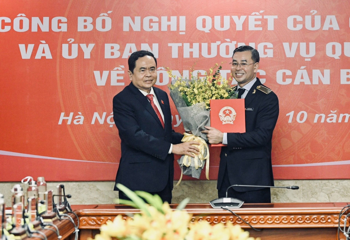 Phó Chủ tịch Thường trực Quốc hội Trần Thanh Mẫn trao Nghị quyết của Quốc hội về chức danh Tổng Kiểm toán nhà nước cho ông Ngô Văn Tuấn
