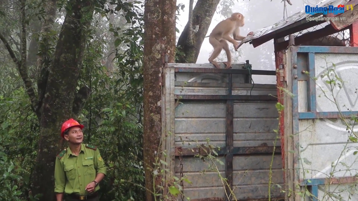 Hạt Kiểm lâm huyện Minh Long phối hợp với các ngành liên quan tổ chức thả 3 cá thể khỉ đuôi lợn về môi trường tự nhiên.