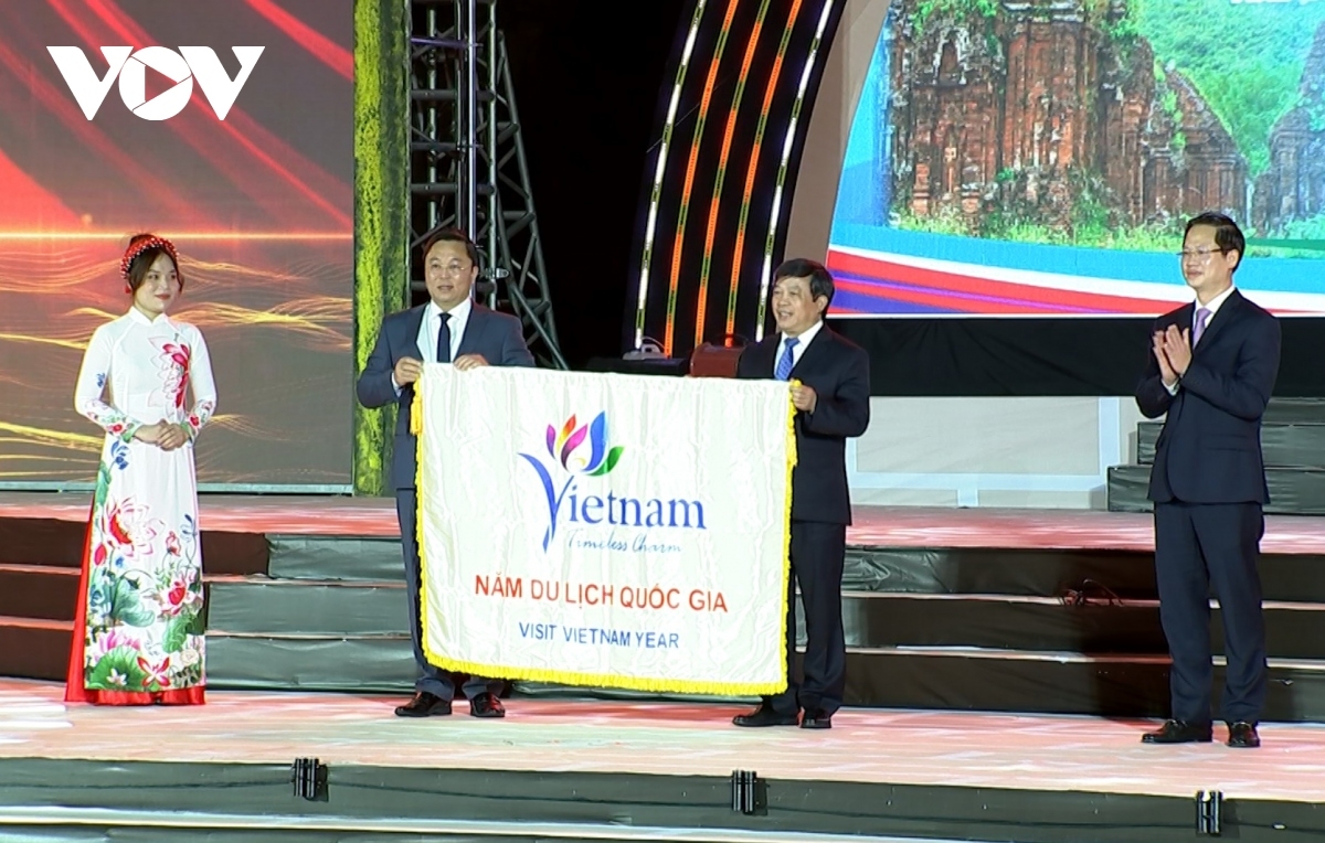 Tại buổi lễ Bộ Văn hóa, Thể thao và Du lịch, UBND tỉnh Quảng Nam và Chủ tịch UBND tỉnh Bình Thuận thực hiện nghi thức trao và nhận Cờ đăng cai tổ chức Năm Du lịch quốc gia 2023- chủ đề “Bình Thuận hội tụ xanh”./.