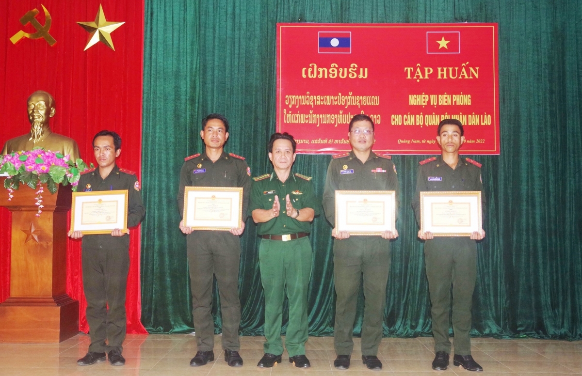Bộ Chỉ huy Bộ đội Biên phòng tỉnh Quảng Nam vừa bế mạc lớp tập huấn nghiệp vụ biên phòng cho 20 học viên là cán bộ lực lượng bảo vệ biên giới thuộc Bộ Chỉ huy Quân sự tỉnh Sê Kông, Lào.