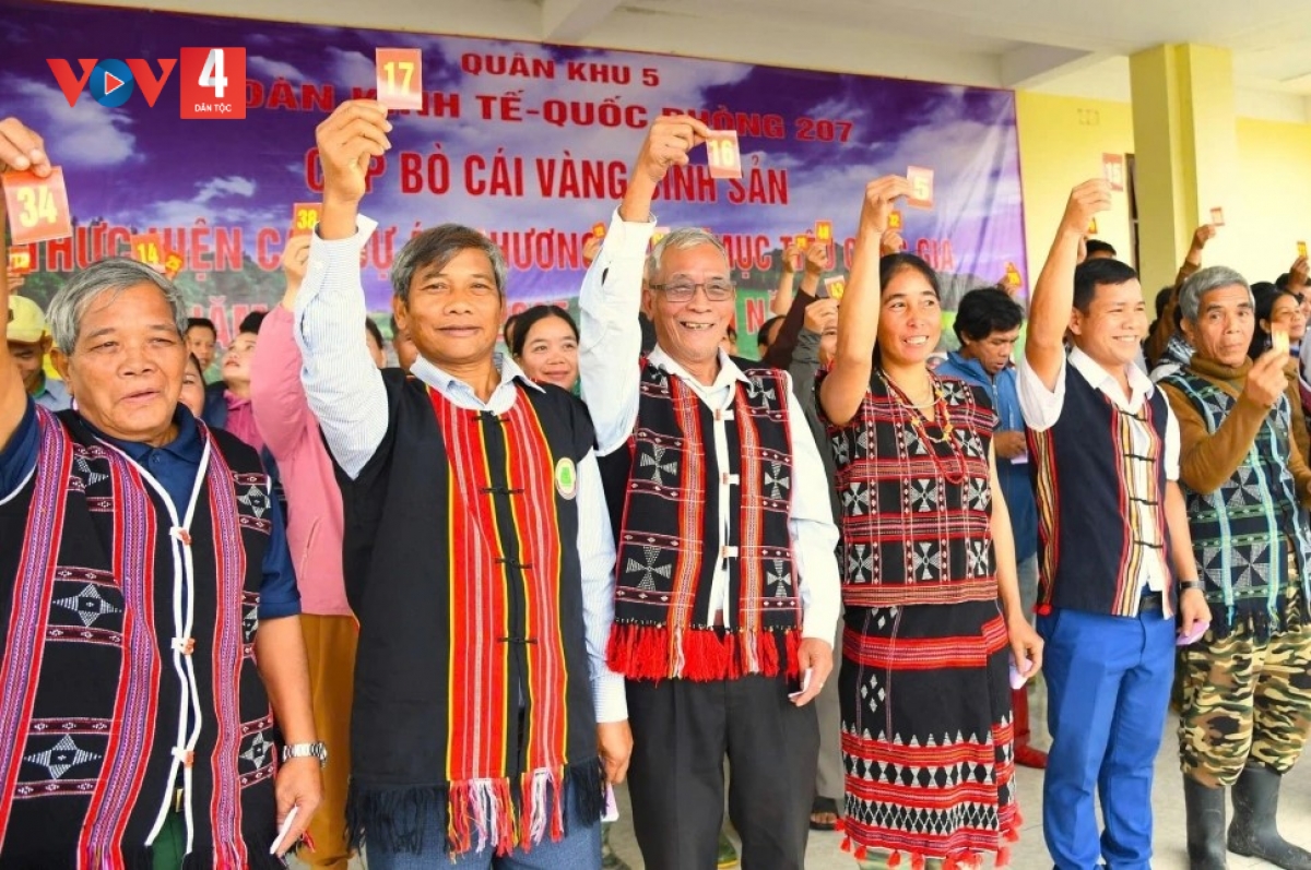 Hoạt động này nằm trong Dự án “Phát triển kinh tế - xã hội, mô hình bộ đội gắn với dân bản vùng đồng bào dân tộc thiểu số và miền núi” thuộc Chương trình mục tiêu Quốc gia giai đoạn 2021-2025. Tại buổi trao tặng, đơn vị tổ chức bốc thăm công khai, minh bạch để cấp 200 con bò cái vàng sinh sản hỗ trợ 100 hộ dân, mỗi hộ nhận 2 con. Cùng với nguồn bò giống chất lượng tốt, bà con còn được cán bộ kỹ thuật của Đoàn hướng dẫn kiến thức về chăm sóc, phòng bệnh lở mồm long móng, xử lý chướng bụng… thông qua hình thức hỏi - đáp tương tác, giúp người dân dễ áp dụng vào thực tế chăn nuôi.