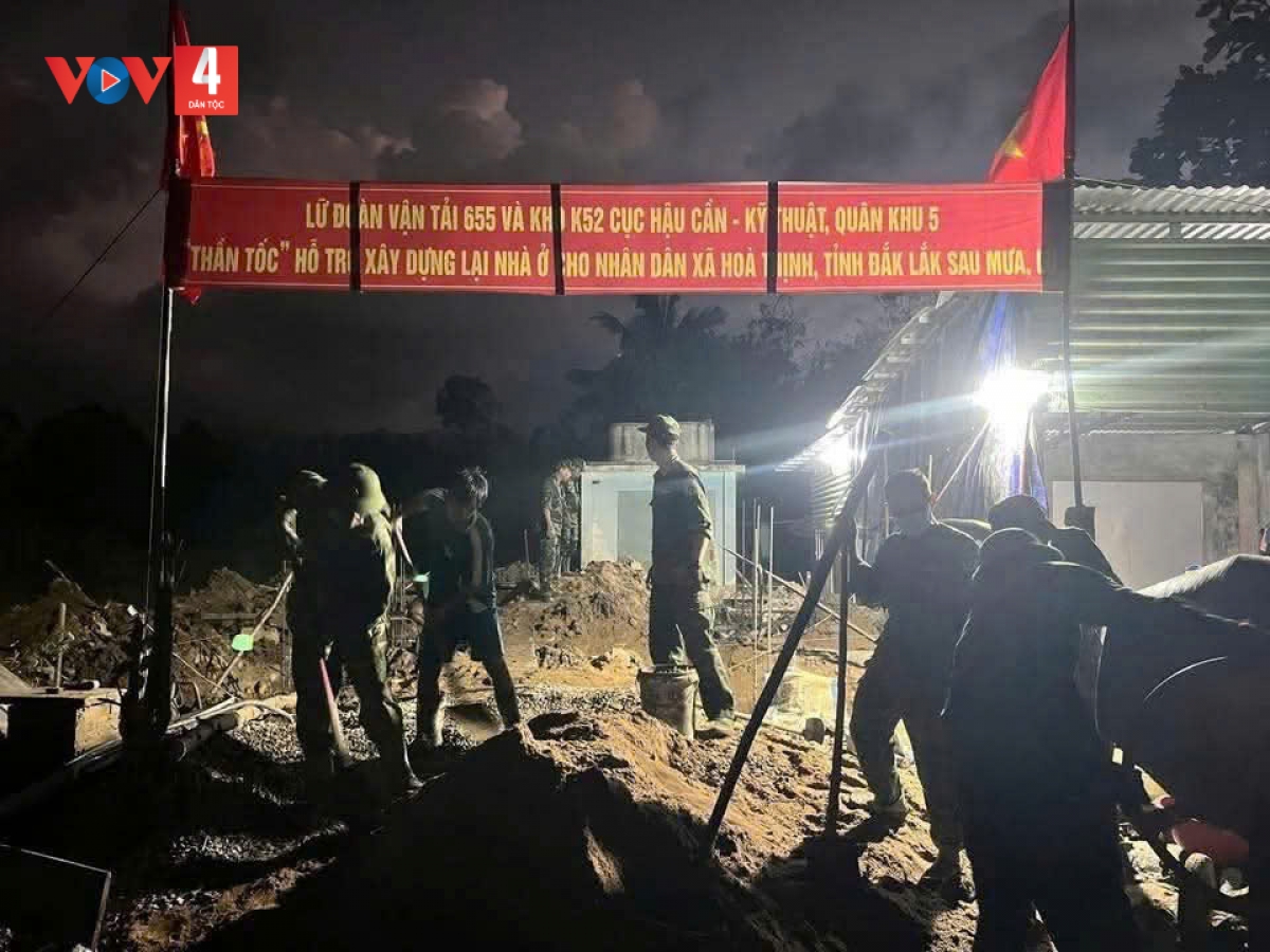 Tại khu phố Phú Lương, phường Đông Hòa, tỉnh Đắk Lắk, do phong tục chọn ngày lành tháng tốt, gia đình ông Trình Tân khởi công muộn hơn kế hoạch. Không để chậm tiến độ, lực lượng Bộ Chỉ huy Quân sự thành phố Đà Nẵng đã hỗ trợ phá dỡ đổ nát, dựng nhà bạt tạm, giải phóng mặt bằng, tập kết vật liệu và gia công sẵn khung sắt. Nhờ vậy, công trình không chỉ bù lại thời gian chậm mà còn vượt tiến độ; tường nhà được nâng thêm 0,5m theo nguyện vọng của gia đình. Ông Trình Tân xúc động nói: