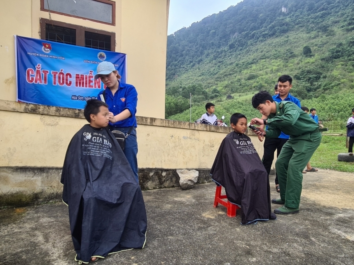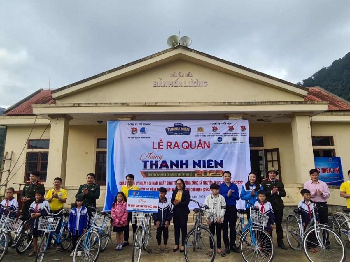 Trong buổi ra quân “Tháng thanh niên”, Huyện Đoàn Minh Hóa phối hợp các đơn vị trao xe đạp tặng các em học sinh miền núi vượt khó học tập; cắt tóc miễn phí và tặng quà các gia đình nghèo, gia đình chính sách khó khăn. Đoàn thanh niên các đơn vị cũng triển khai các hoạt động giúp đỡ người yếu thế, người già neo đơn, người có công cách mạng, người thân chiến sỹ đang làm nhiệm vụ nơi biên giới, hải đảo, cán bộ, đoàn viên, thanh niên có hoàn cảnh khó khăn, vùng sâu, vùng xa.
