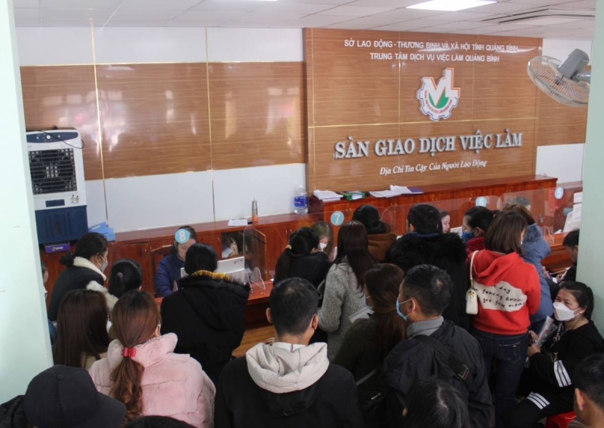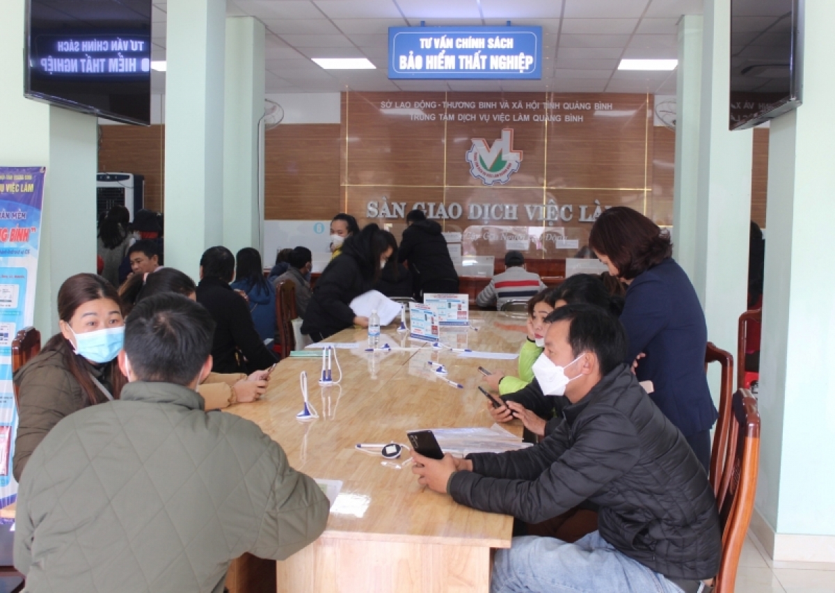 Sau kỳ nghỉ Tết Quý Mão 2023, rất nhiều lao động tại tỉnh Quảng Bình tìm đến sàn giao dịch việc làm để tìm kiếm công việc mới tại quê nhà. Một số lao động làm việc ở các tỉnh phía Nam bị mất việc về quê, cũng đến làm hồ sơ hưởng chế độ bảo hiểm thất nghiệp.