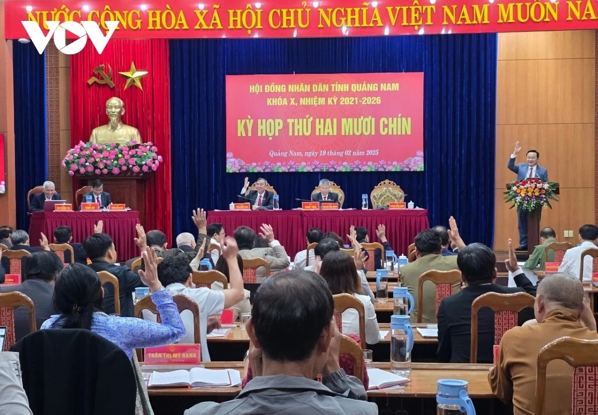 Tỉnh Quảng Nam sáp nhập Sở Ngoại vụ vào Văn phòng Ủy ban nhân dân tỉnh. Ngoài ra, tỉnh này tổ chức lại 5 cơ quan chuyên môn thuộc UBND tỉnh gồm: Sở Y tế; Sở Công Thương; Sở Tư pháp; Sở Giáo dục và Đào tạo; Sở Văn hóa, Thể thao và Du lịch. Sau khi thành lập, sáp nhập, tổ chức lại, UBND tỉnh Quảng Nam có 13 cơ quan chuyên môn (giảm 6 sở ngành) gồm: Sở Tài chính; Sở Xây dựng; Sở Nông nghiệp và Môi trường; Sở Nội vụ; Sở Dân tộc và Tôn giáo; Sở Khoa học và Công nghệ.; Sở Y tế; Sở Công Thương; Sở Tư pháp; Sở Giáo dục và Đào tạo; Sở Văn hóa, Thể thao và Du lịch; Thanh tra tỉnh; Văn phòng Ủy ban nhân dân tỉnh. Tại kỳ họp, HĐND tỉnh Quảng Nam đã thông qua Nghị quyết quyết định biên chế công chức và phê duyệt tổng số lượng người làm việc hưởng lương từ ngân sách nhà nước trong các cơ quan, đơn vị, địa phương (khối chính quyền) năm 2025; Nghị quyết xem xét, ban hành chế độ, chính sách hỗ trợ thêm của tỉnh nhằm ghi nhận quá trình công tác, cống hiến và động viên khuyến khích cán bộ lãnh đạo, quản lý còn độ tuổi công tác dưới 1 nhiệm kỳ nghỉ hưu trước tuổi, nghỉ công tác chờ đủ tuổi nghỉ hưu trên địa bàn tỉnh giai đoạn 2025-2029; Nghị quyết xem xét điều chỉnh tốc độ tăng trưởng GRDP theo chủ trương của Chính phủ tại Nghị quyết số 25 ngày 05/02/2025 về mục tiêu tăng trưởng các ngành, lĩnh vực và địa phương bảo đảm mục tiêu tăng trưởng cả nước năm 2025 đạt 8% trở lên./.
