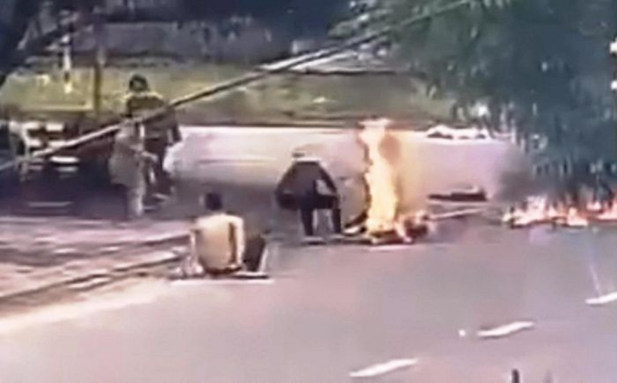 Những ngày qua, mạng xã hội lan truyền đoạn clip ghi lại hình ảnh một số người xô xát với nhau. Sau đó, một cô gái được cho là đã bị nhóm người tạt xăng rồi châm lửa đốt ngay trên đường. Sau khi bị tạt xăng đốt, cô gái bị ngọn lửa bao trùm, liên tục giãy giụa. Một số người có mặt đã cố gắng dập tắt ngọn lửa trên người nữ nạn nhân. Khoảng 20 giây sau thì ngọn lửa mới được dập tắt, nạn nhân nằm gục và được mọi người đưa đi bệnh viện cấp cứu.