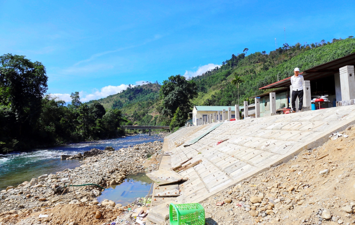 Kè bê tông chống sạt lở bờ sông Nước Doan, khu vực trường Phổ thông Dân tộc bán trú -Tiểu học Trà Leng. Khu vực này vào mùa mưa bão, nước sông dâng cao hơn 1m so với mặt sân trường, tràn vào tận lớp học.