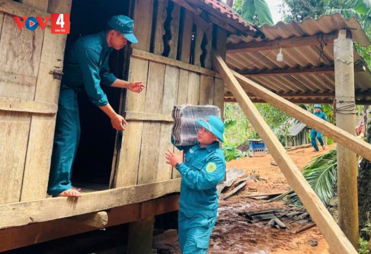 Chính quyền xã Ba Vì (huyện Ba Tơ cũ), tỉnh Quảng Ngãi khẩn trương huy động lực lượng hỗ trợ người dân khắc phục thiệt hại do lốc xoáy gây ra.