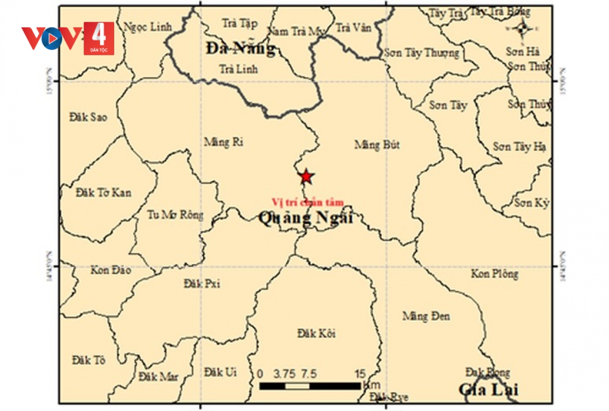 Trung tâm Báo tin động đất và cảnh báo sóng thần - Viện Các Khoa học Trái đất (thuộc Viện Hàn lâm Khoa học và công nghệ Việt Nam) cho biết, ngày 17/3, hệ thống của Trung tâm đã ghi nhận 2 trận động đất xảy ra tại các xã Măng Bút và Kon Plông của tỉnh Quảng Ngãi. Trong đó, trận động đất xảy ra tại xã Măng Bút có độ lớn 3.8 độ, độ sâu chấn tiêu khoảng 8.1 km. Tại xã Kon Plông, trận động đất có độ lớn 3.0 độ, độ sâu chấn tiêu khoảng 8.2 km. Trung tâm Báo tin động đất và cảnh báo sóng thần cho biết, cả hai trận động đất này được đánh giá thuộc cấp độ rủi ro thiên tai cấp 0.