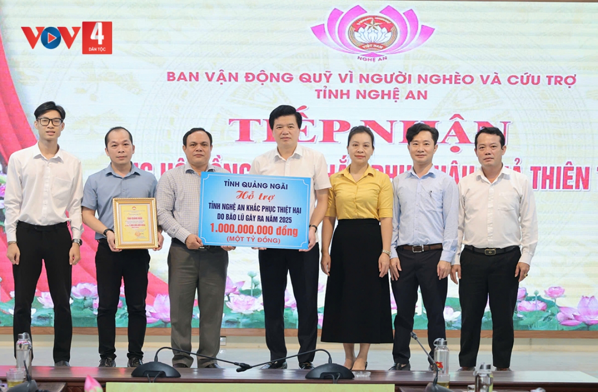 Đoàn công tác của Ủy ban Mặt trận Tổ quốc Việt Nam tỉnh Quảng Ngãi đã đến thăm và trao 1 tỷ đồng hỗ trợ nhân dân tỉnh Nghệ An khắc phục thiệt hại do bão lũ gây ra