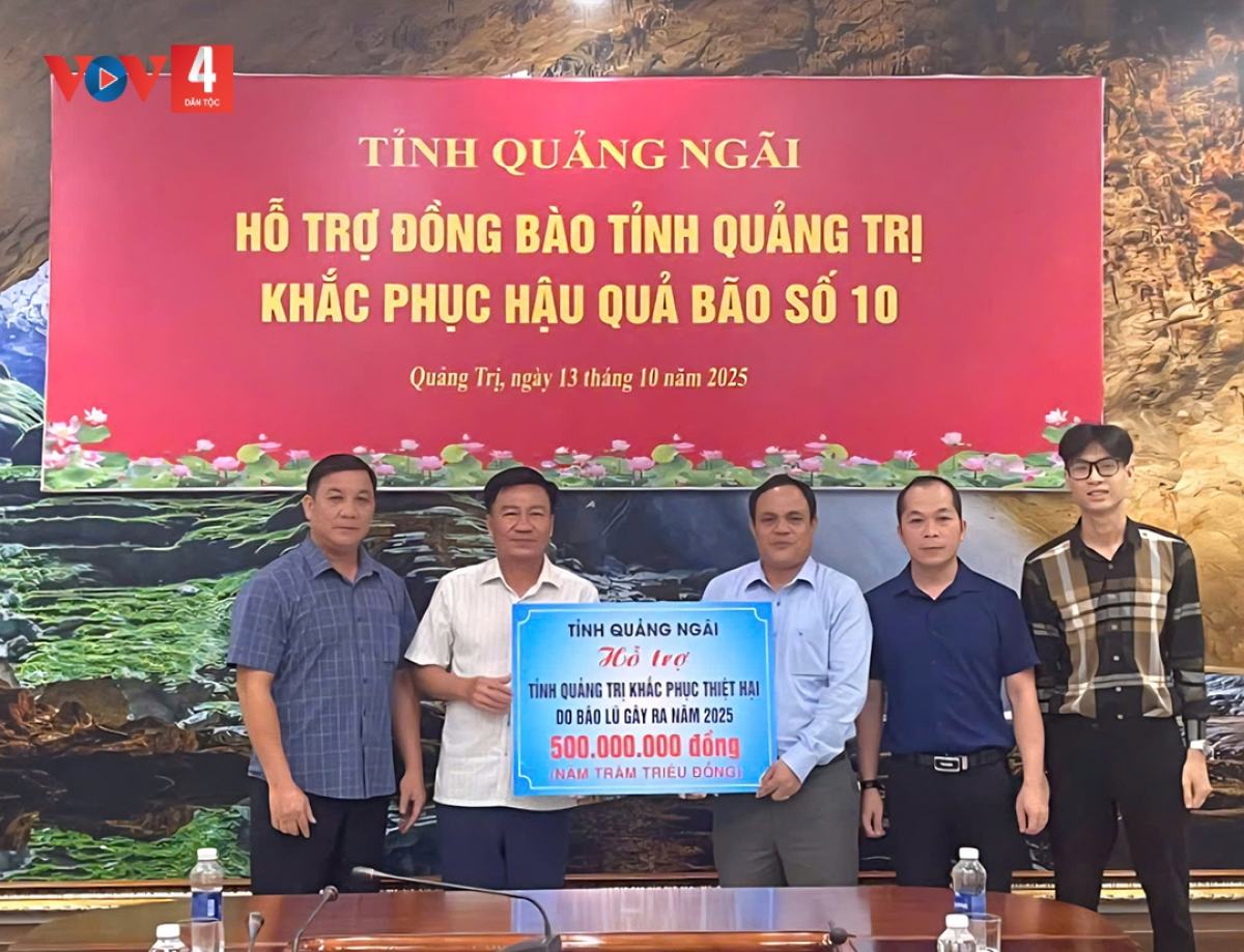 Trước đó, Đoàn công tác của Ủy ban Mặt trận Tổ quốc Việt Nam tỉnh Quảng Ngãi đã đến thăm và trao tiền hỗ trợ nhân dân 2 tỉnh Quảng Trị và Hà Tĩnh, mỗi tỉnh 500 triệu đồng.
